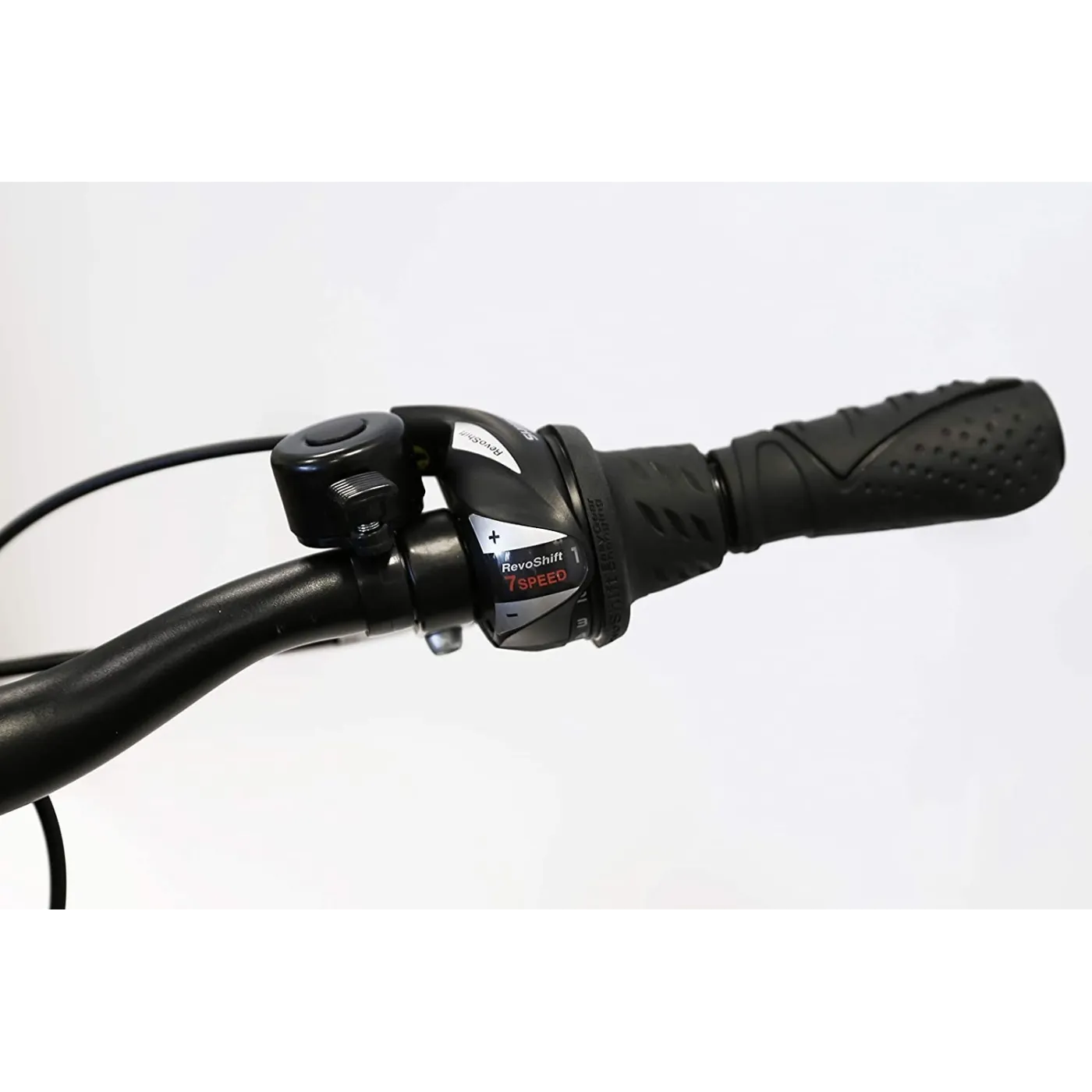 Napęd od Bafang w tylnej piaście wspomaga jazdę w pięciu trybach, a pojemny akumulator 11,6 Ah daje możliwość przejechania nawet do 80 km na jednym ładowaniu (w zależności od warunków i trybów jazdy). Rower wyposażony jest w 21 biegów od Shimano oraz tarczowe hamulce mechaniczne, które zapewniają bezpieczeństwo hamowania w trudnych warunkach. Dodatkowo rower posiada podnóżkę, która ułatwia postoje na trasie.