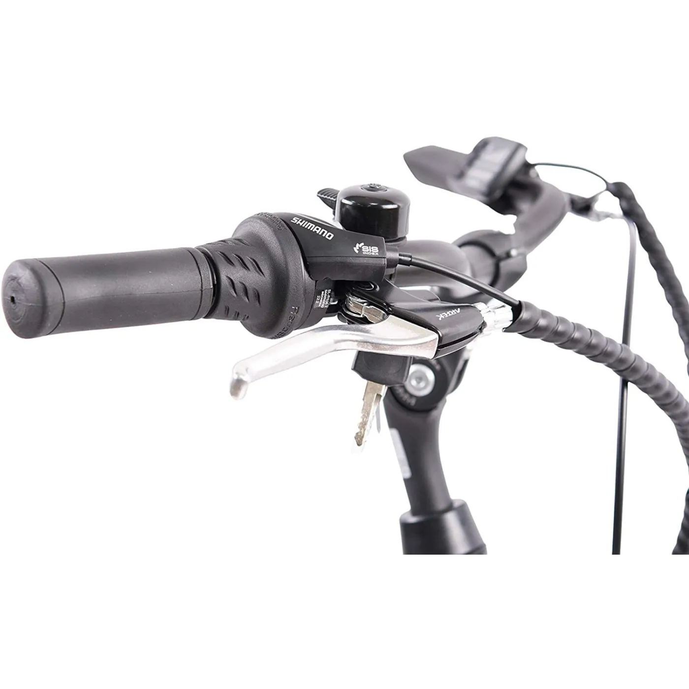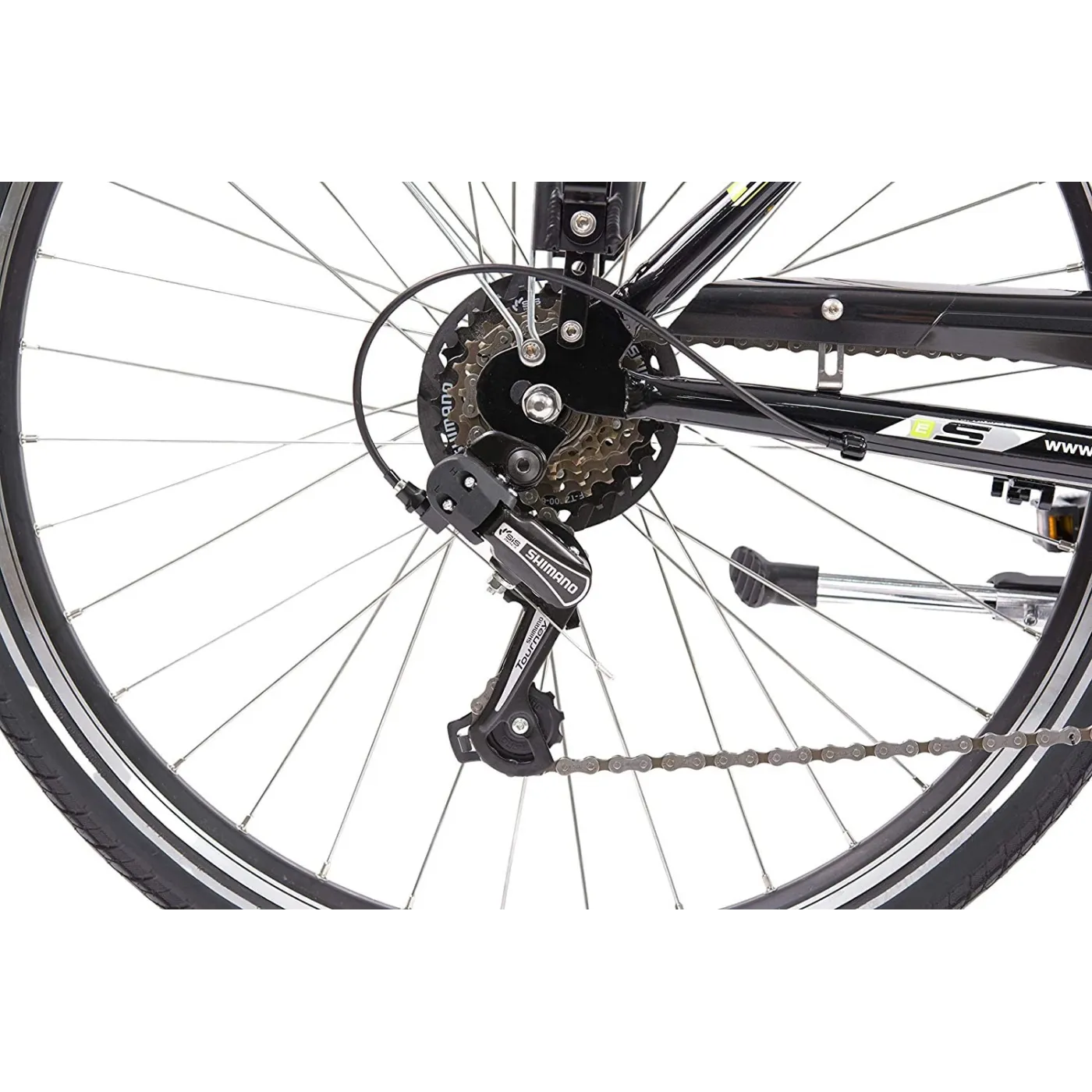 Poza tym posiada również system przerzutek Shimano Tourney z 7 przełożeniami, które pozwolą na dostosowanie się do warunków na drodze, nawet jeśli zdarzy się iż bateria będzie rozładowana.