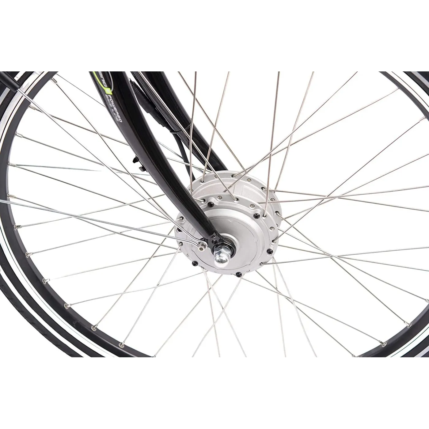To elektryczny rower miejski, który z pewnością spodoba się zarówno kobietom jak i mężczyznom, który szukają wytrzymałego roweru w dobrej cenie. Jego charakterystyczna niska rama, wygodne miejskie siodełko oraz wspomaganie elektryczne sprawiają, że jazda na nim to czysta przyjemność. Doskonały towarzysz w drodze do pracy, na zakupy czy na codzienne lub weekendowe przejażdżki. Wyposażony w tylny silnik o mocy 250 W, dzięki czemu jazda pod górę nie będzie od teraz sprawiać większego wysiłku.