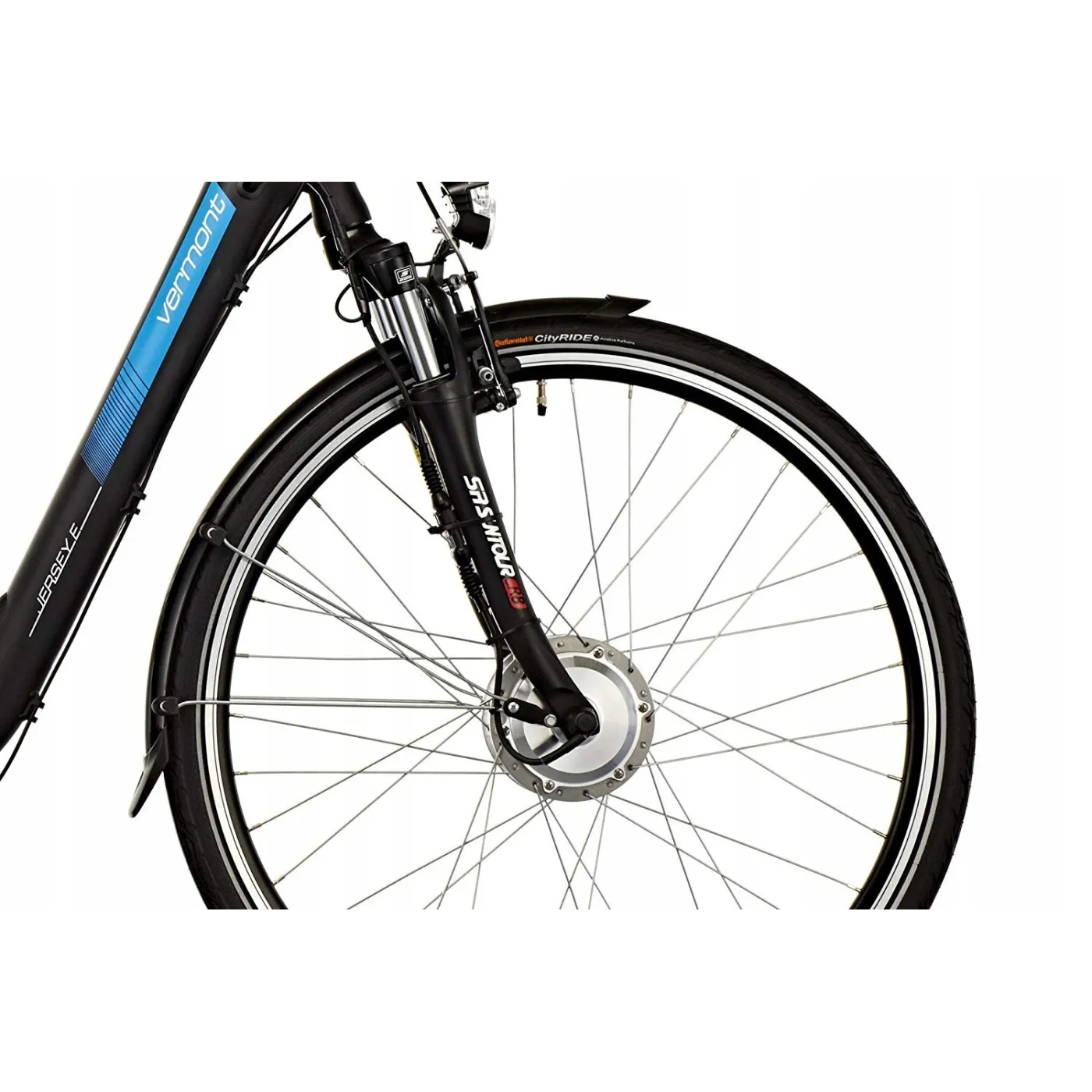 Oprócz elektrycznego wspomagania silnika, Vermont dostarcza również 7-biegową piastę Shimano Nexus i mocnymi hamulcami typu V na przednich i tylnych kołach. Regulowana sztyca, wygięta kierownica i komfortowe siodełko umożliwiają indywidualną regulację pozycji siedzącej na rowerze.