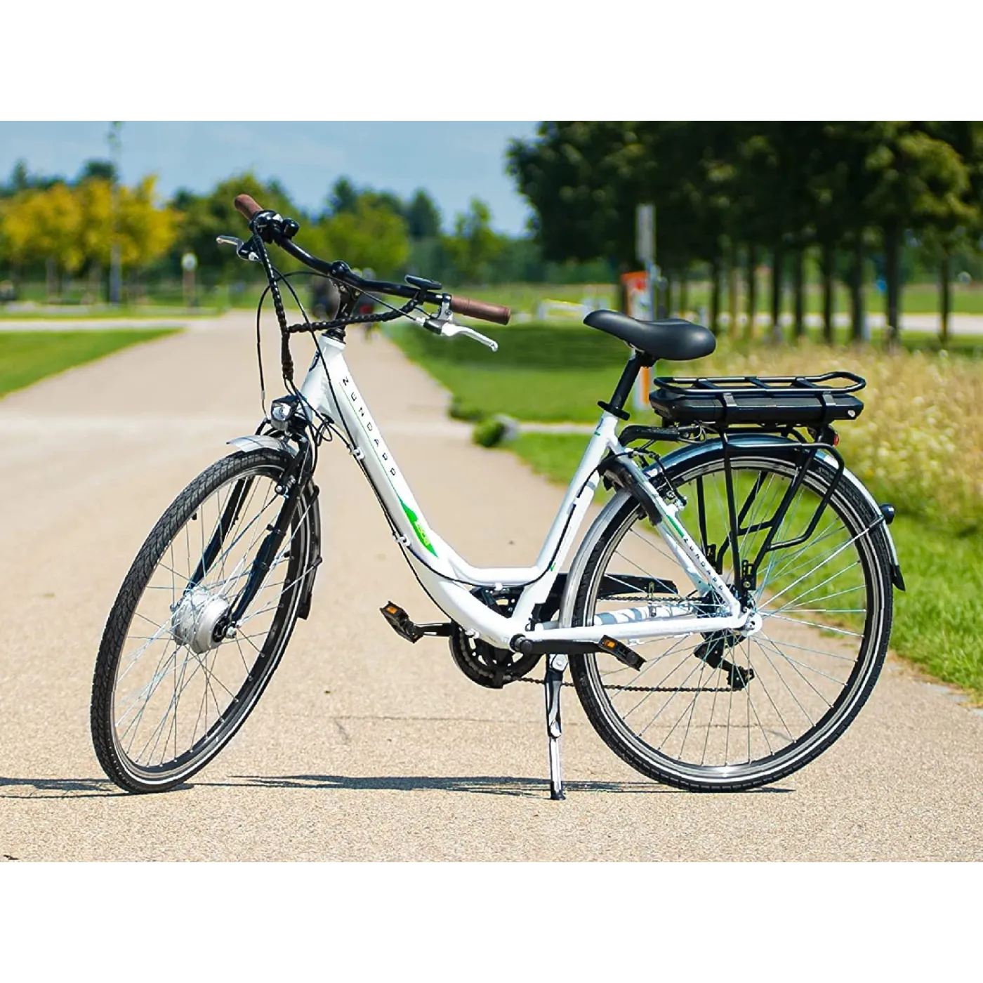Elektryczny napęd składa się z silnika w piaście przedniego koła, który zapewnia moc 250 W. Wyświetlacz wykorzystuje diody LED do wskazania, w jakim trybie jazdy się znajdujesz i jak naładowana jest bateria. Akumulator ma pojemność 468 Wh i tym samym umożliwia zasięg od ok. 35 - 135 km. Dodatkowo w napędzie łańcuchowym dostępnych jest 7 biegów - tylna przerzutka jest obsługiwana za pomocą manetki z uchwytem obrotowym.