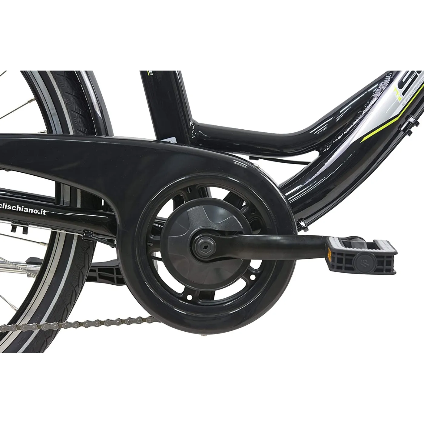 Poza tym posiada również system przerzutek Shimano Tourney z 7 przełożeniami, które pozwolą na dostosowanie się do warunków na drodze, nawet jeśli zdarzy się iż bateria będzie rozładowana.