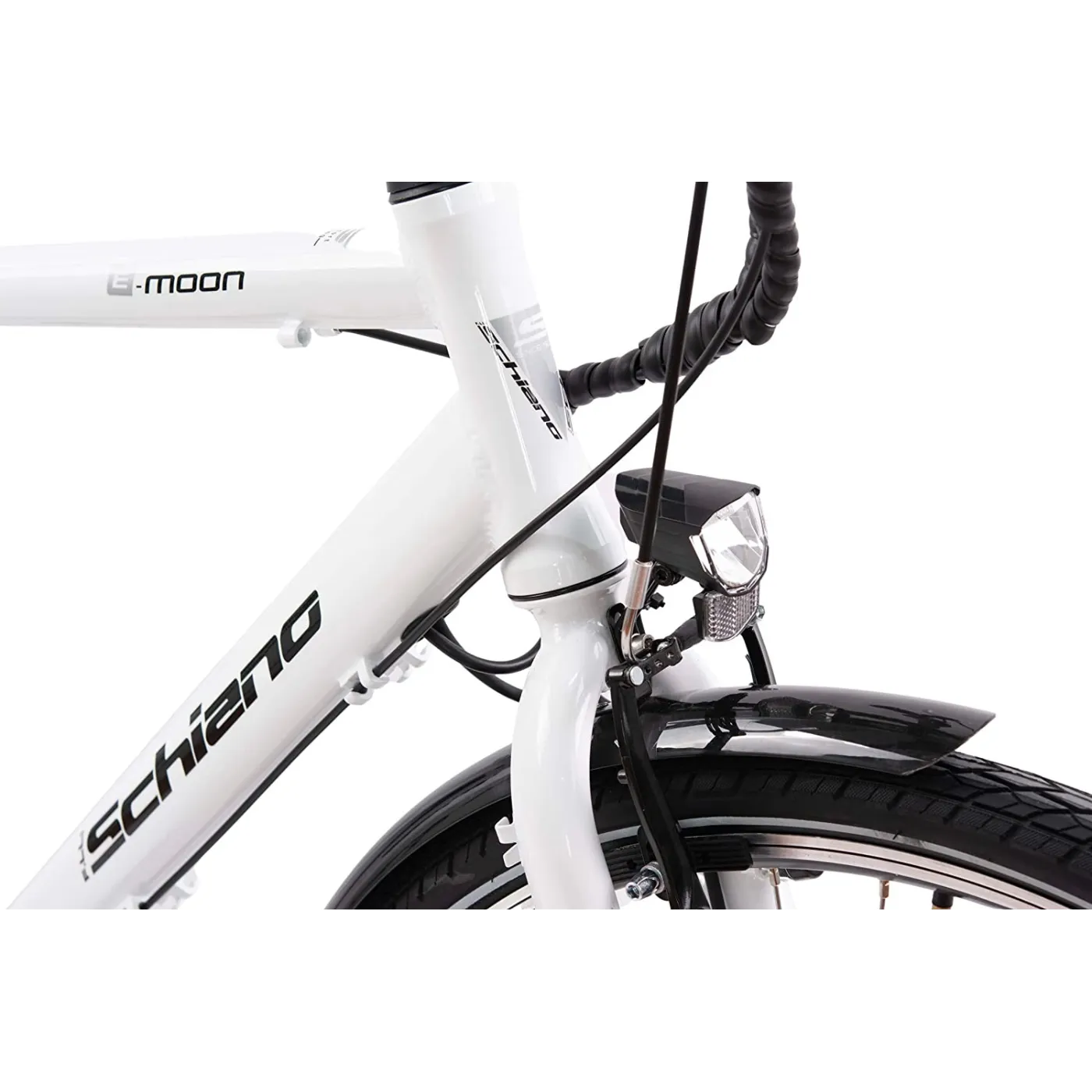 E-Moon posiada również wszystkie potrzebne akcesoria, tj. błotniki, stopkę i oświetlenie oraz dzwonek - zapewniając tym bezpieczeństwo jazdy.