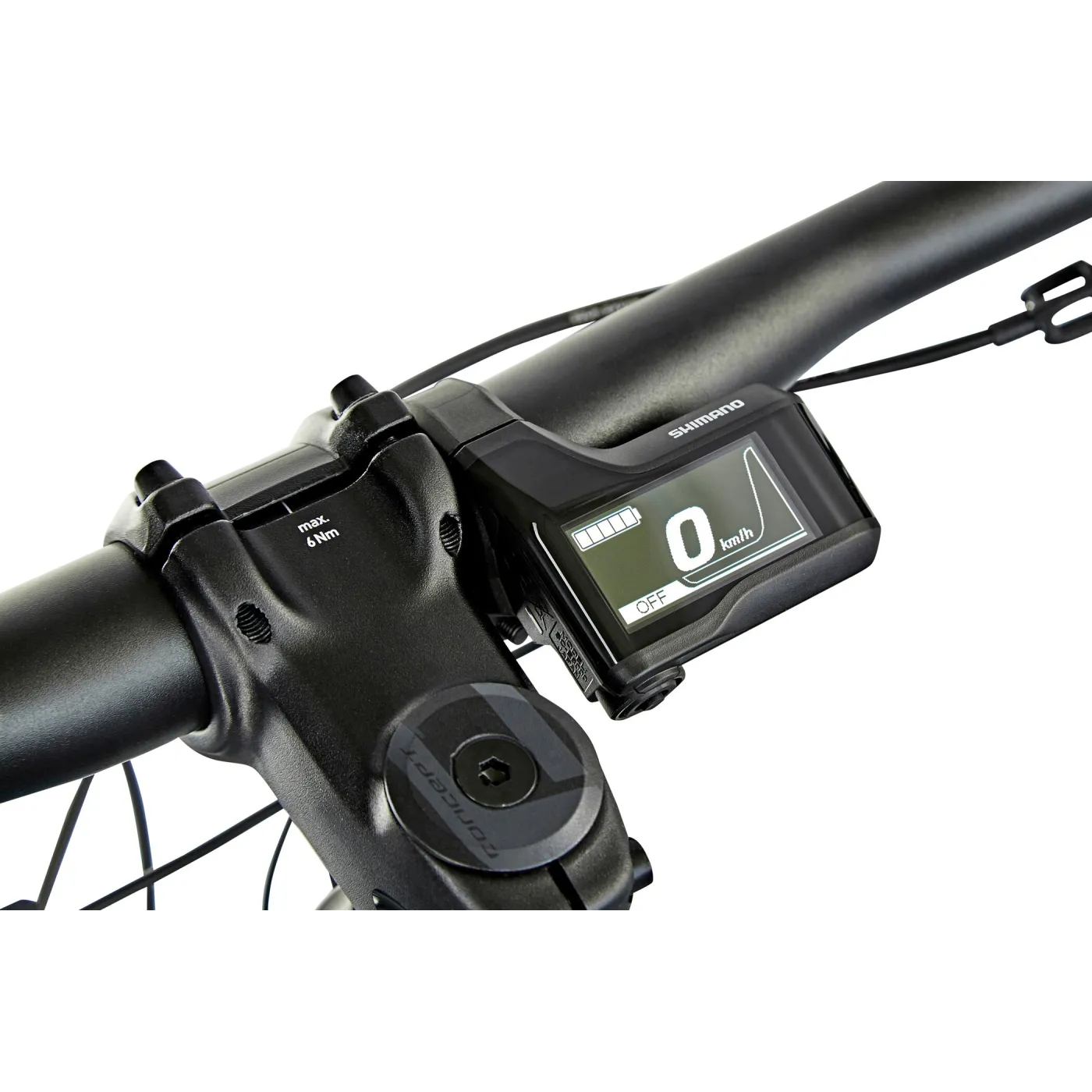 Sztywna i lekka aluminiowa rama z nowoczesną geometrią i wewnętrznie poprowadzonymi kablami umieszcza mocny napęd e-bike Shimano w korbie. Duży akumulator litowo-jonowy mieści się na środkowej części ramy i zapewnia dużo energii dzięki pojemności 504 Wh. Umożliwia to naprawdę długie wycieczki terenowe ze wspomaganiem elektrycznym.
