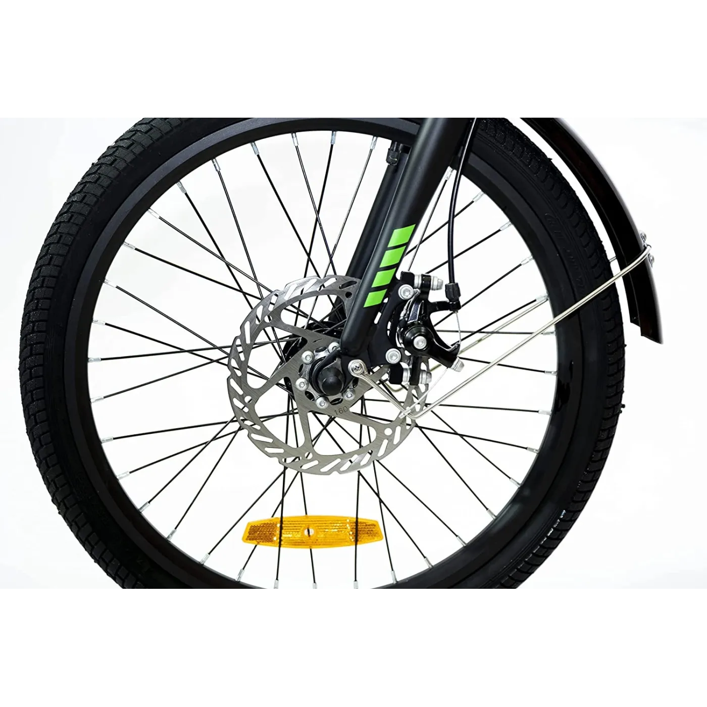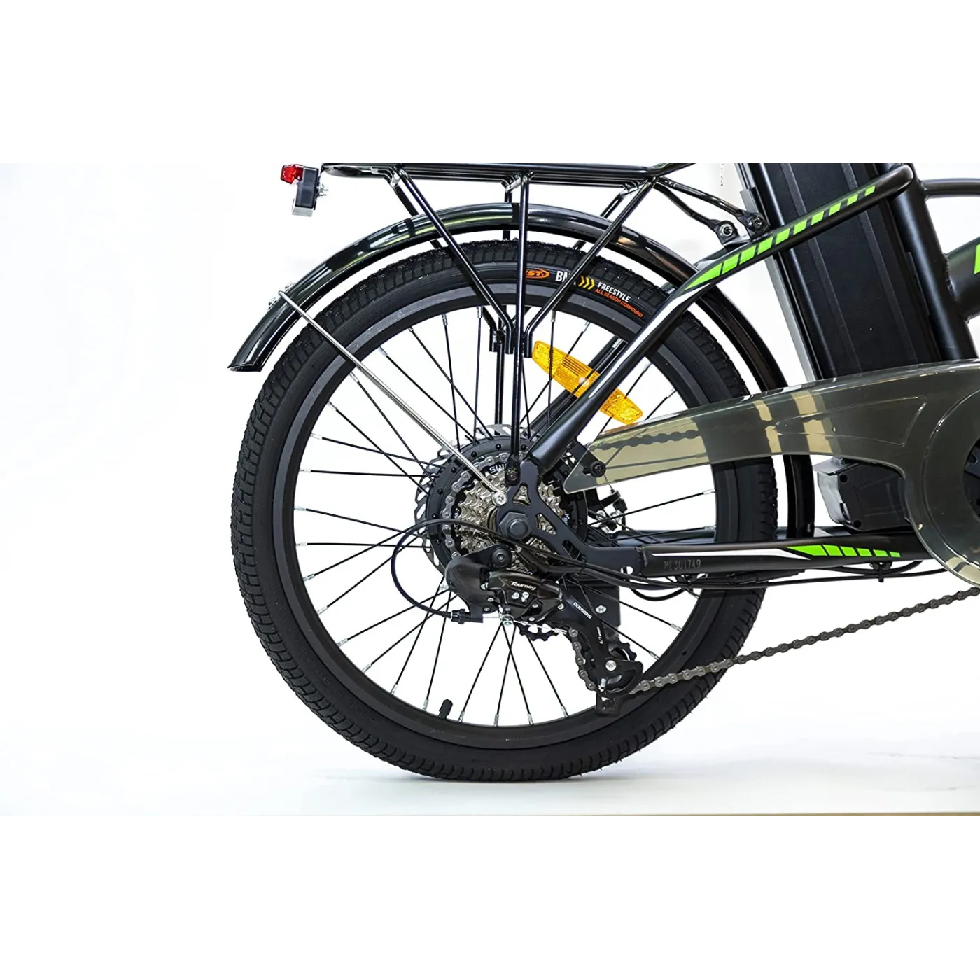 Jest wyposażony w 7-biegową przerzutkę SHIMANO i bezszczotkowy silnik dla maksymalnej prędkości 25 km/h. Do tego składana rama, mocne światła LED i jednostka sterująca, który pozwala wybrać jeden z kilku trybów jazdy, aby czuć się komfortowo w każdych warunkach.