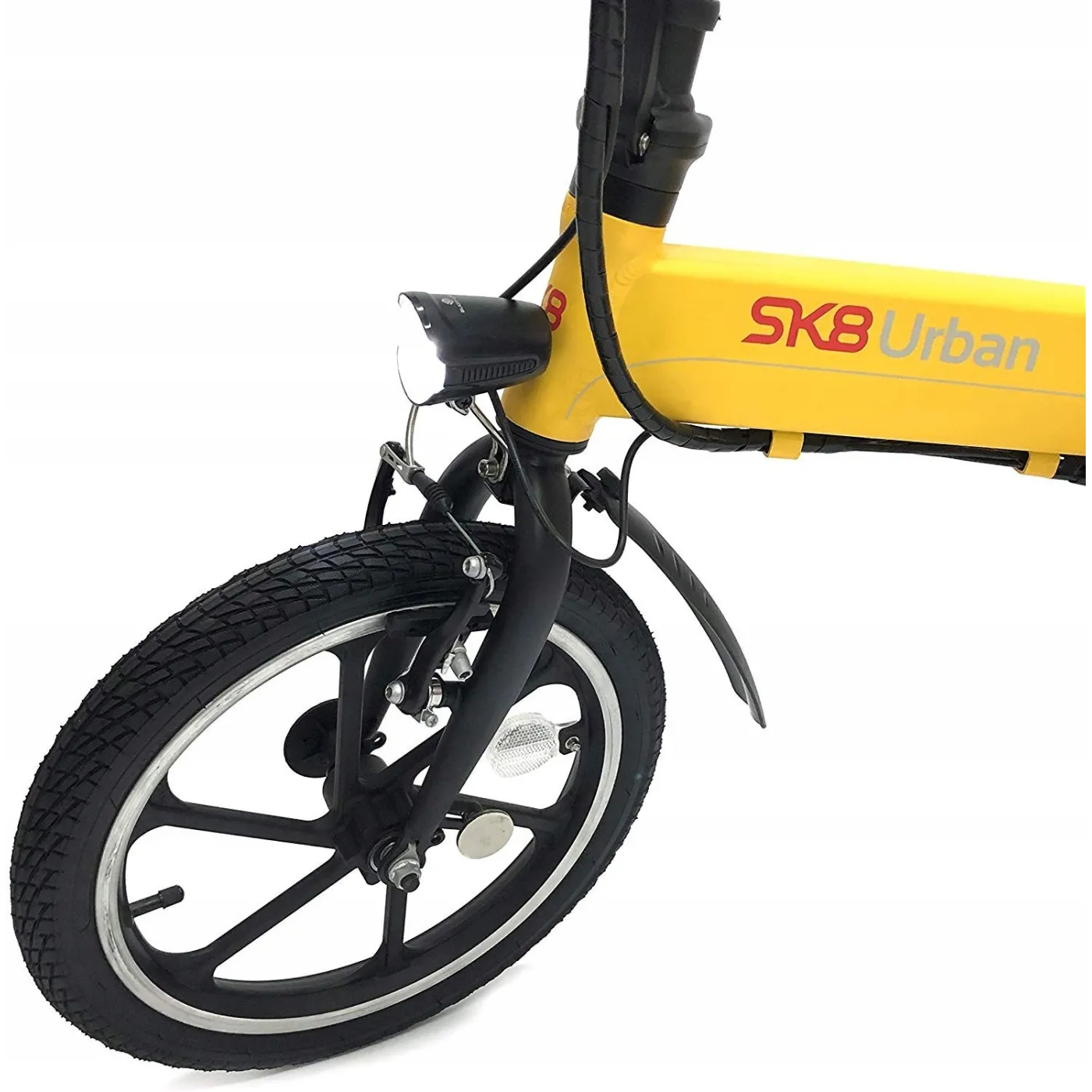 Elektryczny składak wyposażony w 250W silnik bezszczotkowy i akumulator elektryczny 7,8Ah pozwala na pokonanie do 40 km na jednym ładowaniu (w zależności od warunków). Beetle posiada światło LED z przodu oraz czerwony odblask z tył, błotniki, podnóżkę i wygodne miejskie siodełko. Dzięki licznikowi na kierownicy możesz kontrolować parametry w czasie jazdy, a jego mocny, żółty kolor sprawia, że rower nie wygląda zwyczajnie. Aluminiowa rama z funkcją szybkiego składania pozwala na złożenie i przetransportowanie roweru w każdej chwili w każde miejsce! Inteligentny układ hamulcowy pozwala na hamowanie bez poślizgu, minimalizując ryzyko upadku - naciskając hamulec wyłącza się się wspomaganie (napęd). Co więcej - rower świetnie nadaje się zarówno do jazdy miejskiej jak i terenowej!
