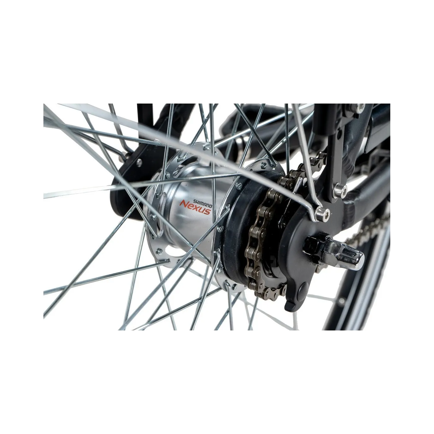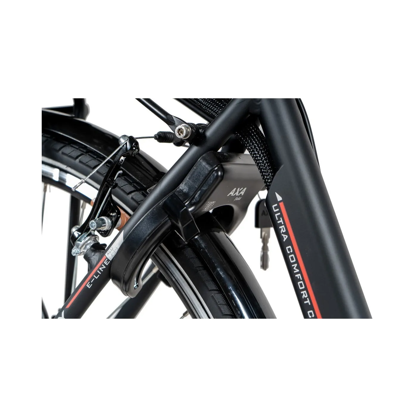 Wydajny akumulator litowo-jonowy Greenway YJ145, zintegrowany z bardzo stabilnym bagażnikiem, o pojemności 13 Ah i 468 Wh, oferuje średni zasięg do 100 km (w zależności od wybranych ustawień, wagi kierowcy, ukształtowania terenu itp.). Oczywiście bateria jest zabezpieczona przed kradzieżą i można ją w każdej chwili odblokować za pomocą kluczyka i wyjąć w celu naładowania. Alternatywnie ładowanie można wykonać to bezpośrednio na rowerze.
