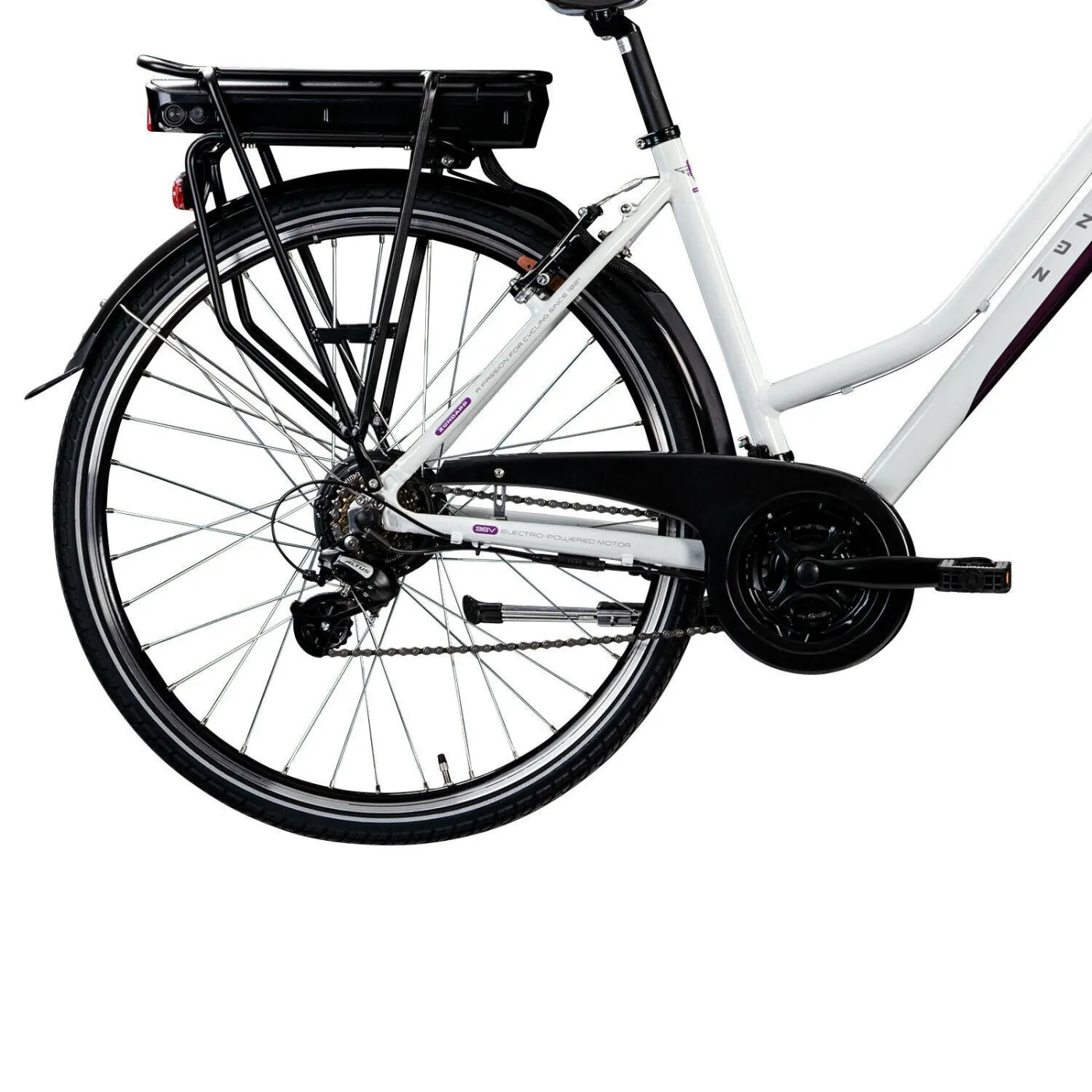 Napęd elektryczny z silnikiem na tylnym kole zapewnia moc 250 watów do prędkości 25 km/h. Z akumulatorem 374 Wh umiejscowionym na bagażniku możesz przejechać od 30 do 115 km. Ponieważ oprócz masy całkowitej, wybrany poziom wspomagania, ukształtowanie terenu i warunki pogodowe, takie jak wiatr czołowy, mają wpływ, trudno jest podać dokładną specyfikację zakresu akumulatorów do rowerów elektrycznych. Dlatego te informacje należy traktować jako przewodnik.