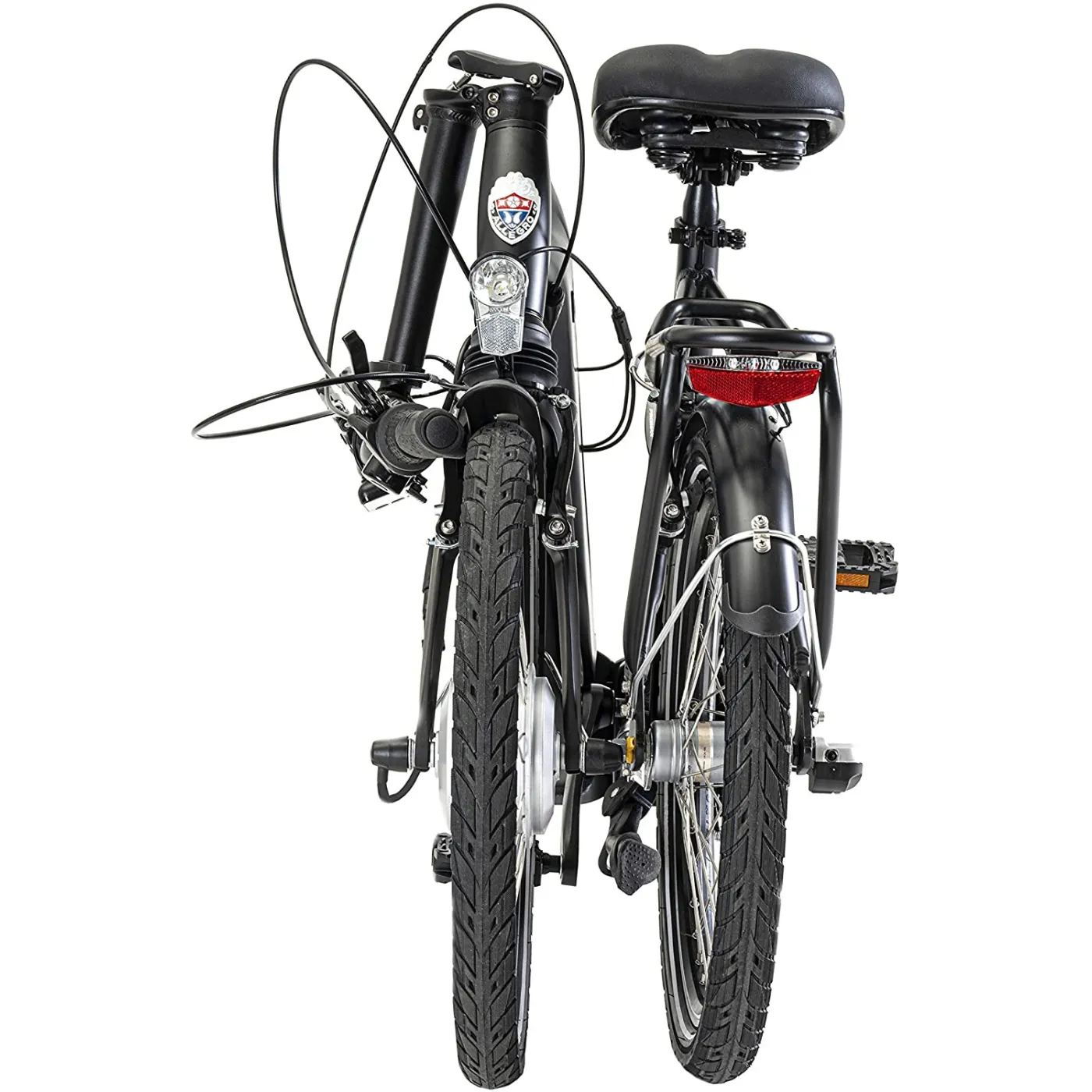 Ponadto Allegro Andi 03 ma piastę Shimano Nexus z 7 biegami sterowanymi za pomocą manetki z uchwytem obrotowym. Amortyzowany widelec Zoom zapewnia dodatkową dynamikę. Dzięki mechanicznemu hamulcowi szczękowemu rower zawsze szybko i bezpiecznie się zatrzyma. Ponadto hamulec nożny zapewnia zwiększone poczucie kontroli i bezpieczeństwa. Wyposażony w system oświetlenia składający się z reflektora LED i tylnego światła, ten składany rower elektryczny jest od razu gotowy do użycia.