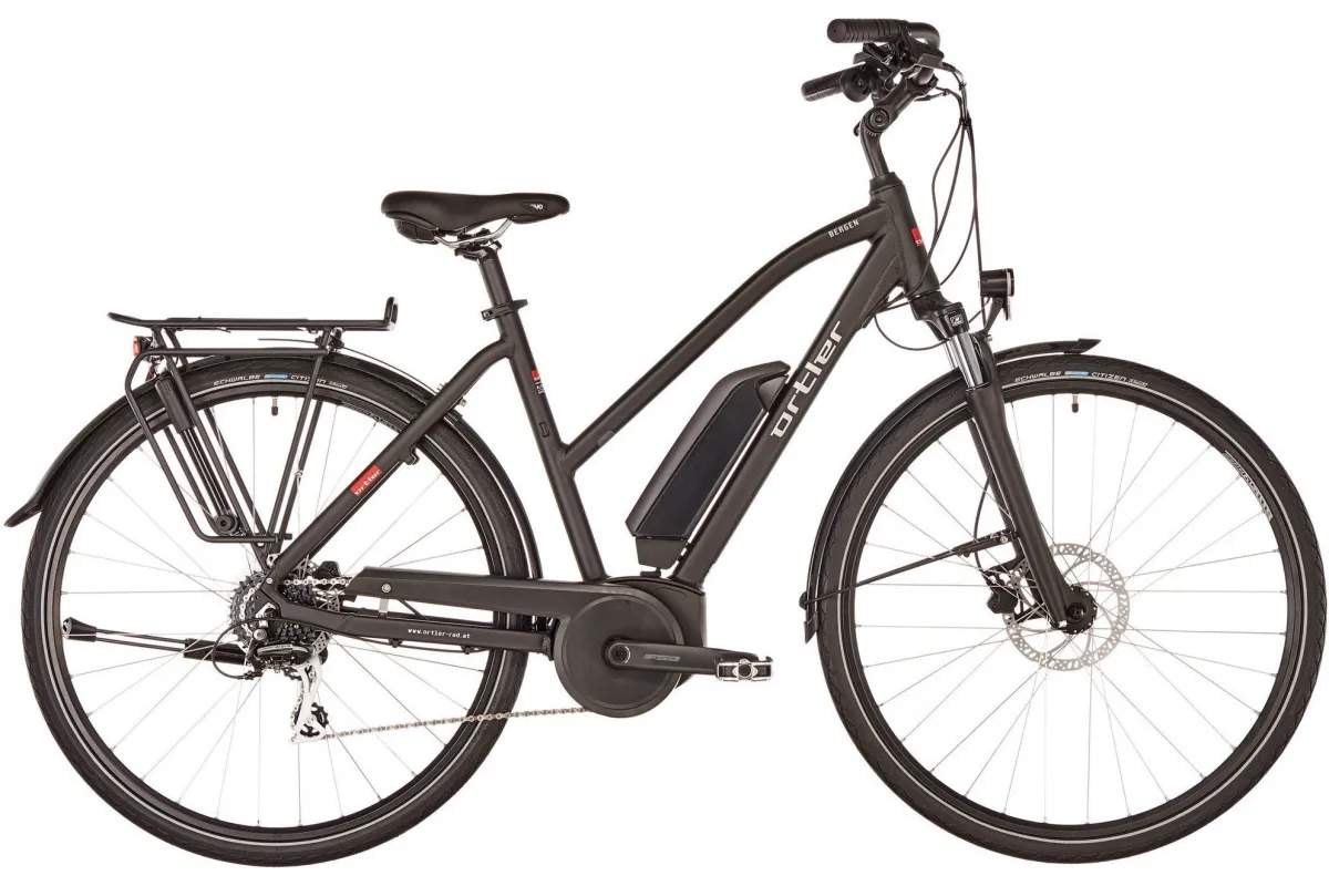 Trwale wyposażony w doskonałe komponenty Shimano, takie jak przekładnie Acera, czuły widelec amortyzowany Suntour. Przednie oświetlenie AXA LED i płynnie działające opony Schwalbe dopełniają e-rower Ortler.