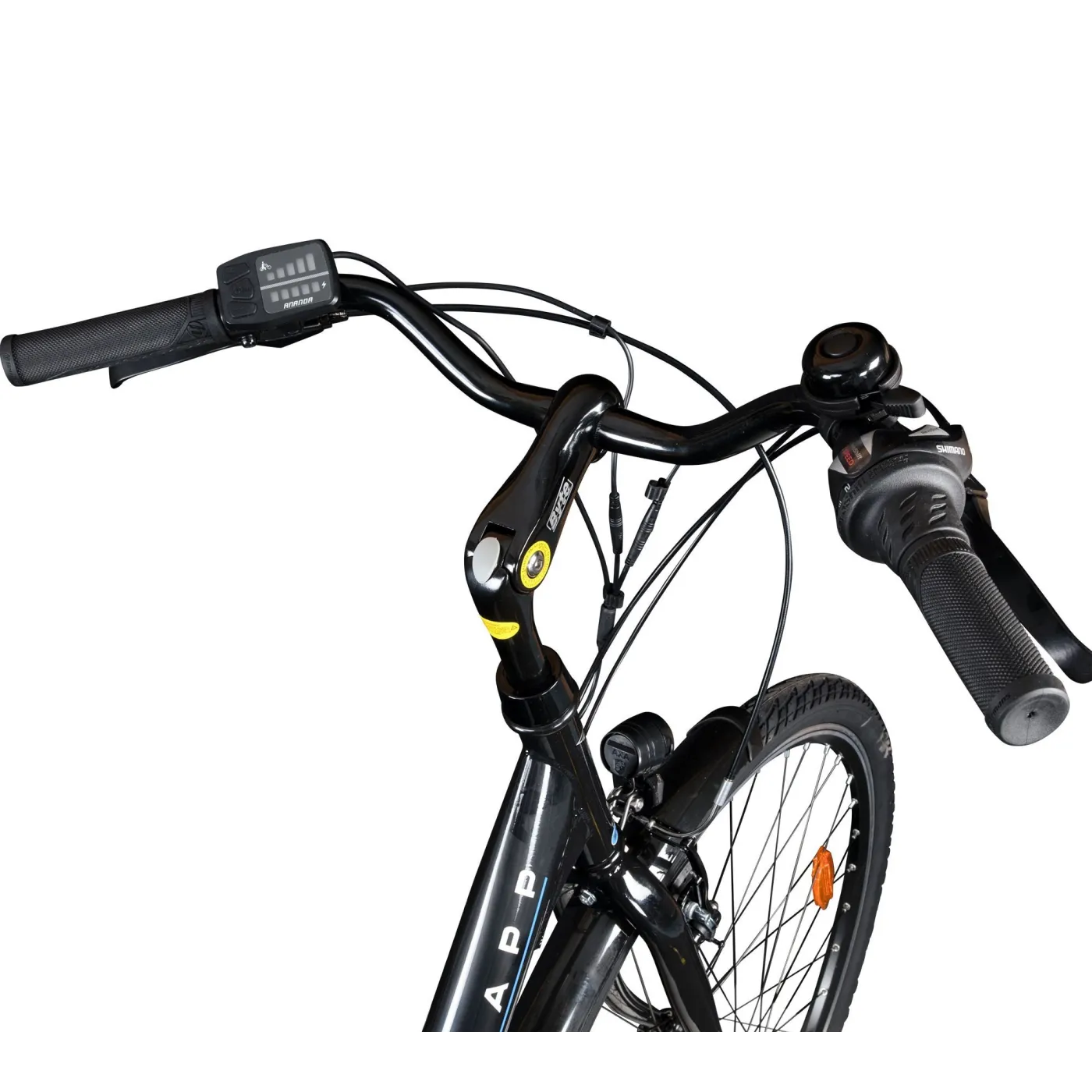 Na tylnym kole znajduje się silnik o mocy 250 W z momentem obrotowym do 40 Nm z możliwością maksymalnej prędkości do 25 km/h. Rower jest obsługiwany za pomocą prostego sterownika, który jest przymocowany obok lewej rączki i można go obsługiwać bez konieczności zdejmowania ręki z kierownicy. Możesz wybrać jeden z trzech poziomów wsparcia, a także zobaczysz stan naładowania baterii. Akumulator o mocy 360 Wh zapewnia zasięg od 30 do 115 km.