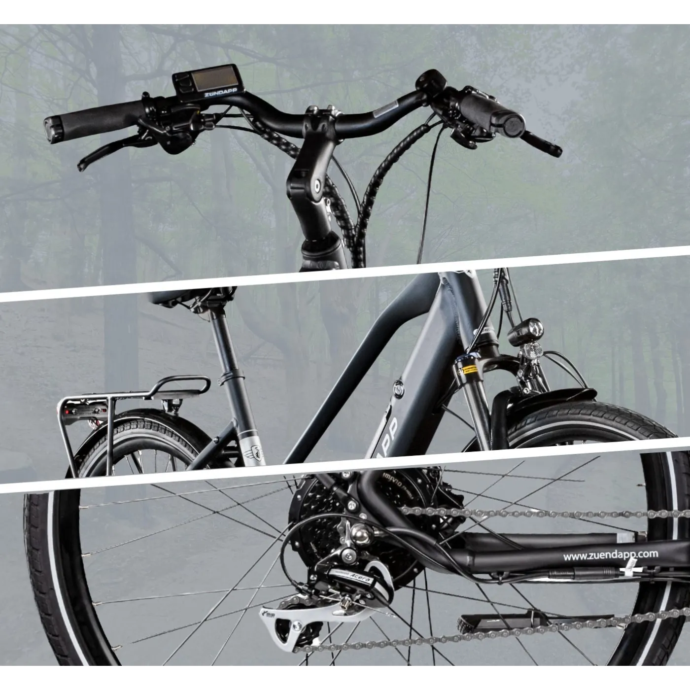 💡 Jako rower na co dzień Zündapp Z810 jest już doskonale wyposażony. Oświetlenie AXA z przodu i z tyłu sprawia, że e-rower nadaje się do ruchu drogowego. Błotniki chronią przed brudem drogowym, a osłona łańcucha zapobiega zaplątaniu się odzieży w łańcuch.