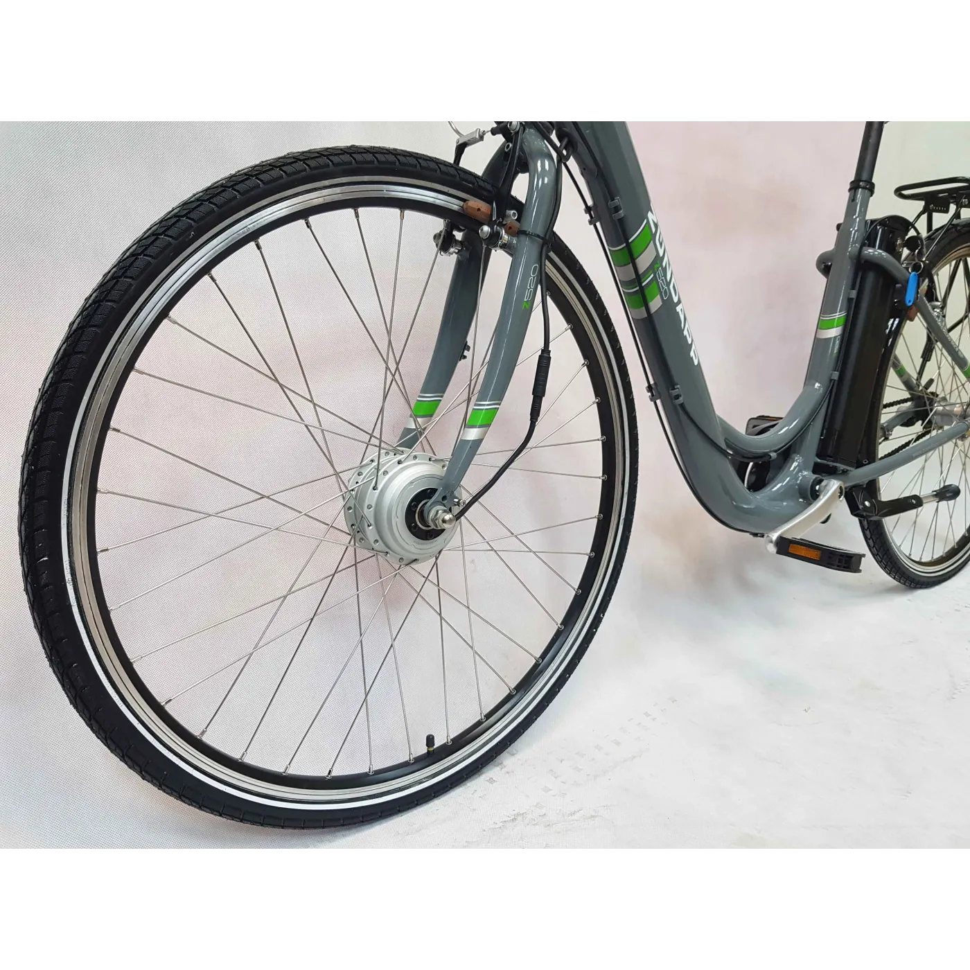 Silnik w piaście koła przedniego zapewnia mocne i ciche wsparcie na drodze. Dzięki mocy 250 watów zapewnia duży napęd do 25 km/h. Dzięki akumulatorowi o pojemności 374,4 Wh możliwy jest zasięg od 35 do 115 km. Ponieważ oprócz masy całkowitej, wybrany poziom podparcia, ukształtowanie terenu i warunki pogodowe, takie jak wiatr czołowy, mają wpływ, trudno jest podać dokładną specyfikację zakresu akumulatorów do rowerów elektrycznych.