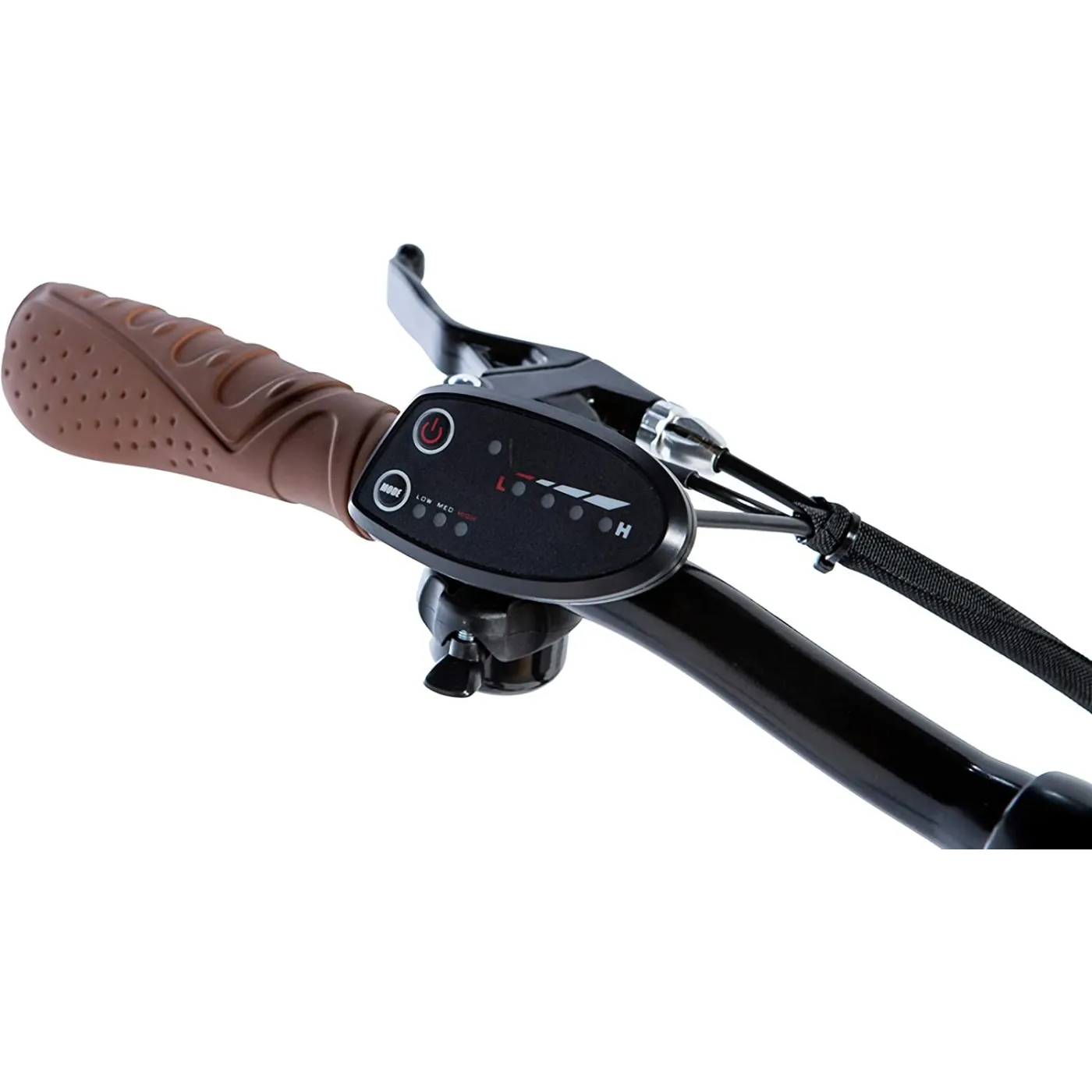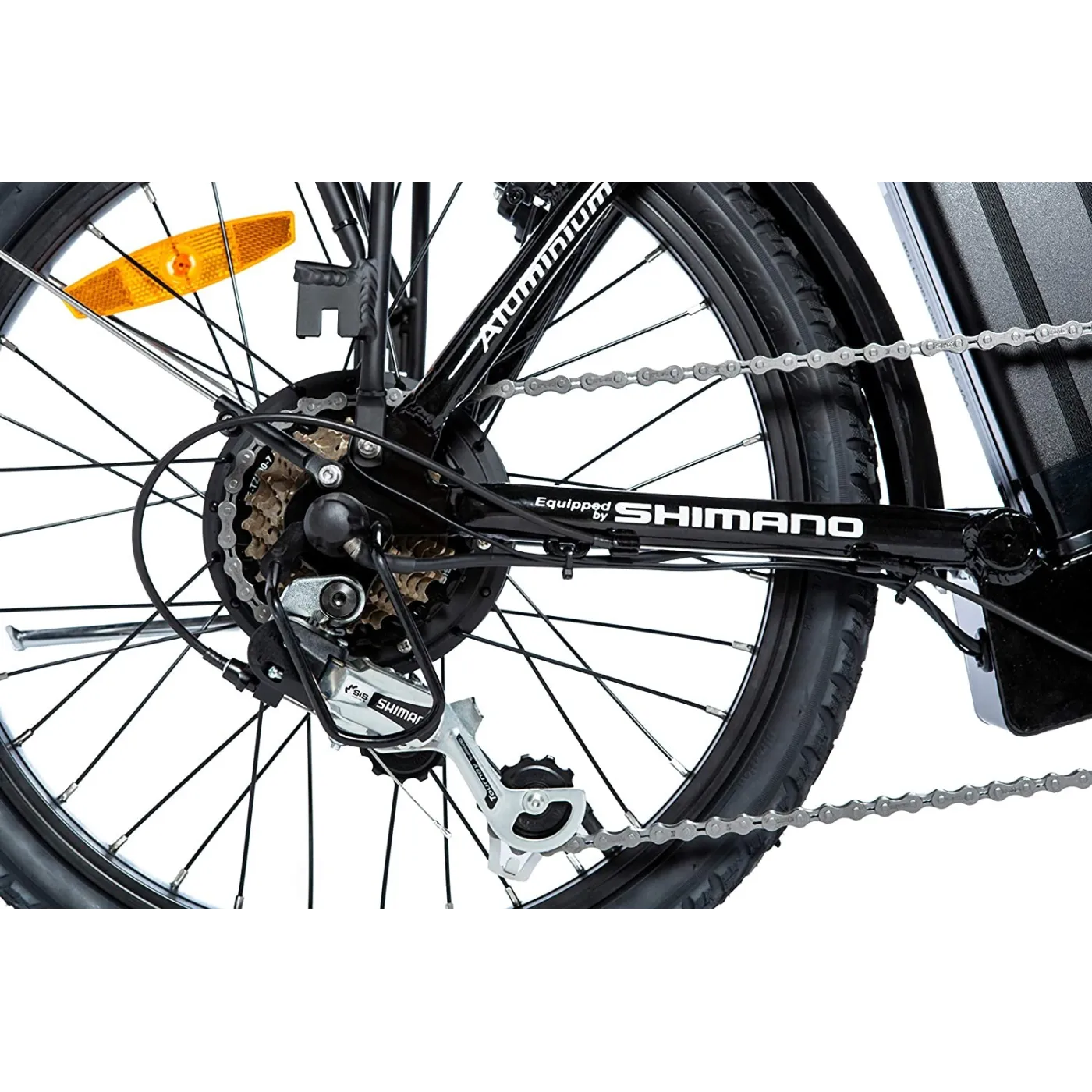 Dzięki silnikowi 250W i trzem poziomom wspomagania możemy w dostosować się do każdej sytuacji. Osiąga maksymalną prędkość 25 km/h i wytrzymuje do 80 km bez ładowania akumulatora. Wyświetlacz zainstalowany na kierownicy, informuje nas o poziomie wspomagania pedałowania i poziomie naładowania akumulatora. Jest wyposażony w 7-biegową skrzynię biegów Shimano, 20-calowe koła, przednie zawieszenie i aluminiowe hamulce V-Brake. Posiada również wszystkie niezbędne akcesoria: przednie i tylne światła LED, tylny bagażnik, błotniki, stopkę i dzwonek.