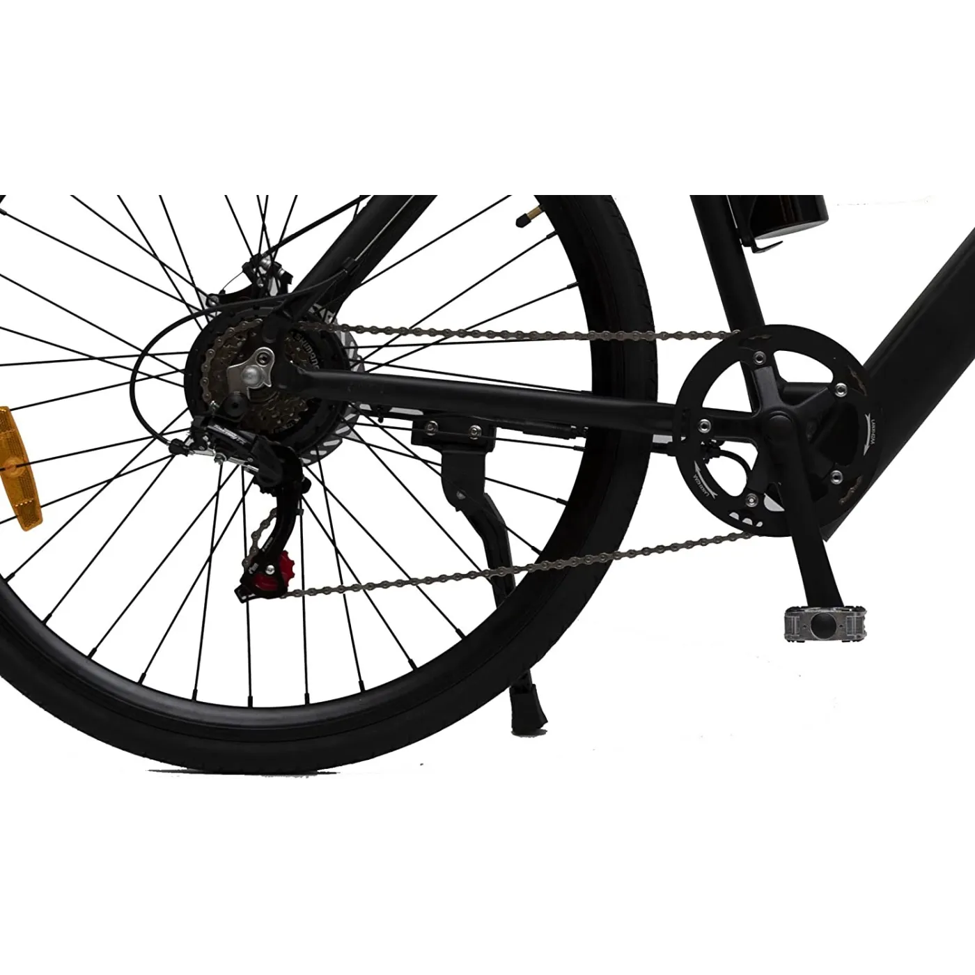 Idealny do użytku w mieście. Silnik piasty tylnej o mocy 250 W wspiera Cię, zgodnie z z wybranym na panelu sterowania trybem. Wydajny akumulator litowo-jonowy, zintegrowany z ramą, o pojemności 7,8 Ah, oferuje średni zasięg do 45 km. Wygodna, wyprostowana pozycja siedzenia zapewnia doskonały widok na ruch miejski. 6-biegowa przerzutka Shimano idealnie uzupełnia silnik elektryczny, a mechaniczne hamulce tarczowe zapewniają wystarczającą siłę hamowania w każdej sytuacji. Oświetlenie, osłona łańcucha, stopka i błotniki uzupełniają cały pakiet.