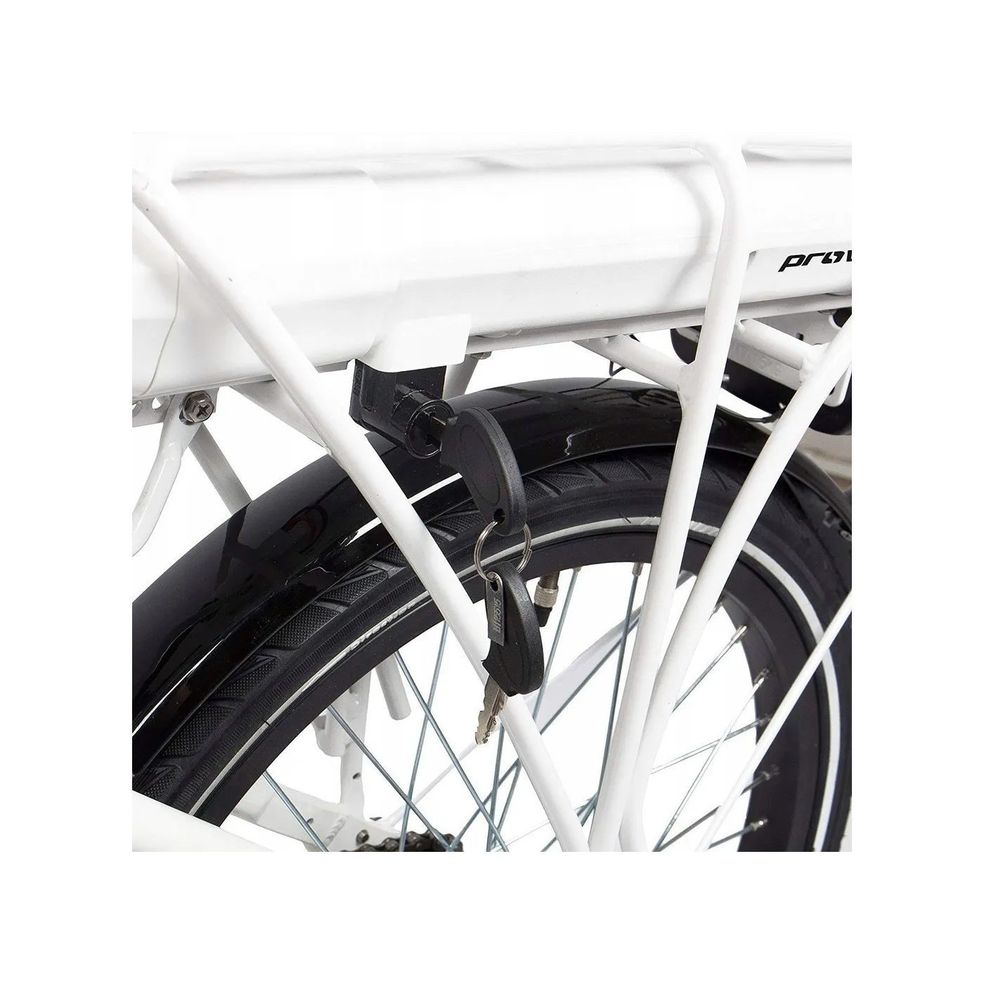 Składany rower elektryczny Provelo łączy w sobie wygląd tradycyjnego roweru oraz zalety roweru elektrycznego. Dzięki aluminiowej ramie jest lekki, po złożeniu zajmuje niewiele miejsca i jest łatwy w transporcie. Ponad to silnik 250W w przedniej piaście i akumulator litowo-jonowy pozwala na pokonanie dystansu do 35 km (w zależności od warunków) przy maksymalnej prędkości 25 km/h! Pełen komfort zapewnia również 3 biegowa przerzutka Shimano Nexus, hydrauliczny hamulec tarczowy i kontra oraz wygodne siodełko, regulowana kierownica i oświetlenie przednie i tylne.