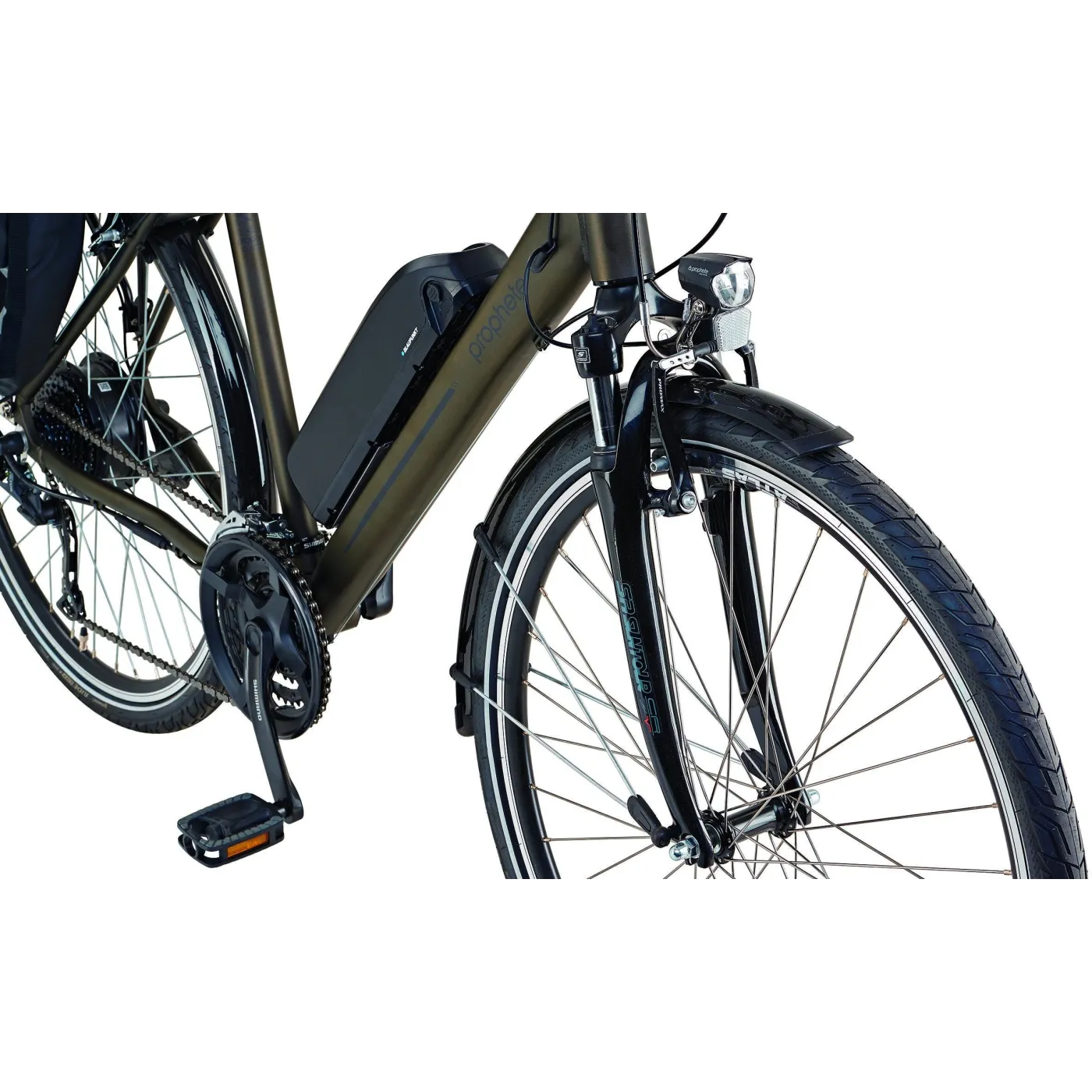 Zarówno przedni amortyzator jak i amortyzowana sztyca siodełka zapewnia pełny komfort podróży, niwelując nierówności. Producent nie zapomniał o atrakcyjnych dodatkach, tj. oświetleniu LED z przodu i z tyłu zasilanego akumulatorem, wygodnym bagażniku, stopce oaz błotnikach.