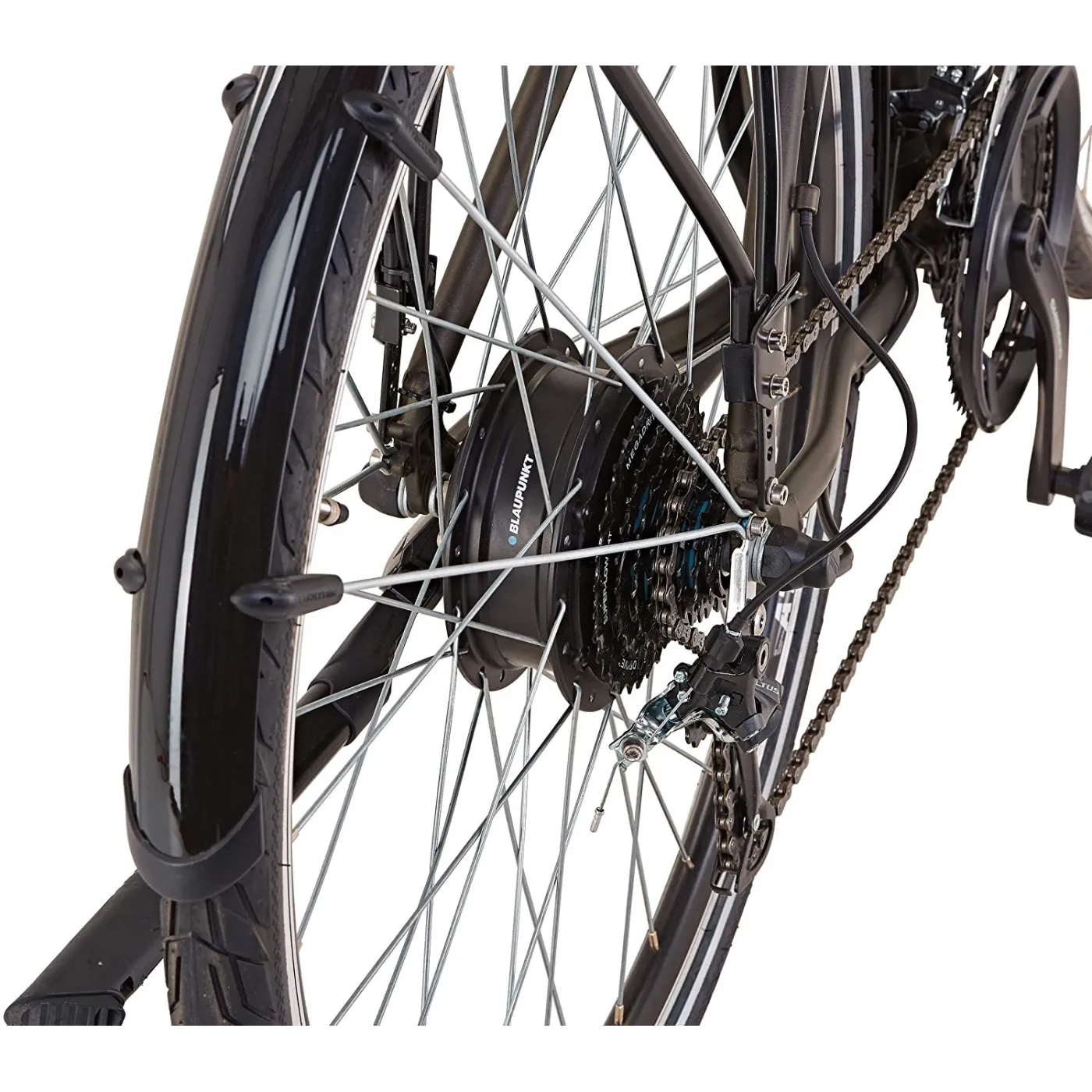 Wspomaganie podczas pedałowania sprawi, że jazda na nim będzie lekka i sprawi,że nie będziesz skupiać się wyłącznie na wysiłku. Posiada aż 5 poziomów wspomagania, które pozwolą na dostosowanie do różnych terenów i własnych potrzeb. Silnik Blaupunkt o mocy 250 W oferuje praktyczną pomoc podczas jazdy pod górkę czy też pchania roweru - również z bagażem.