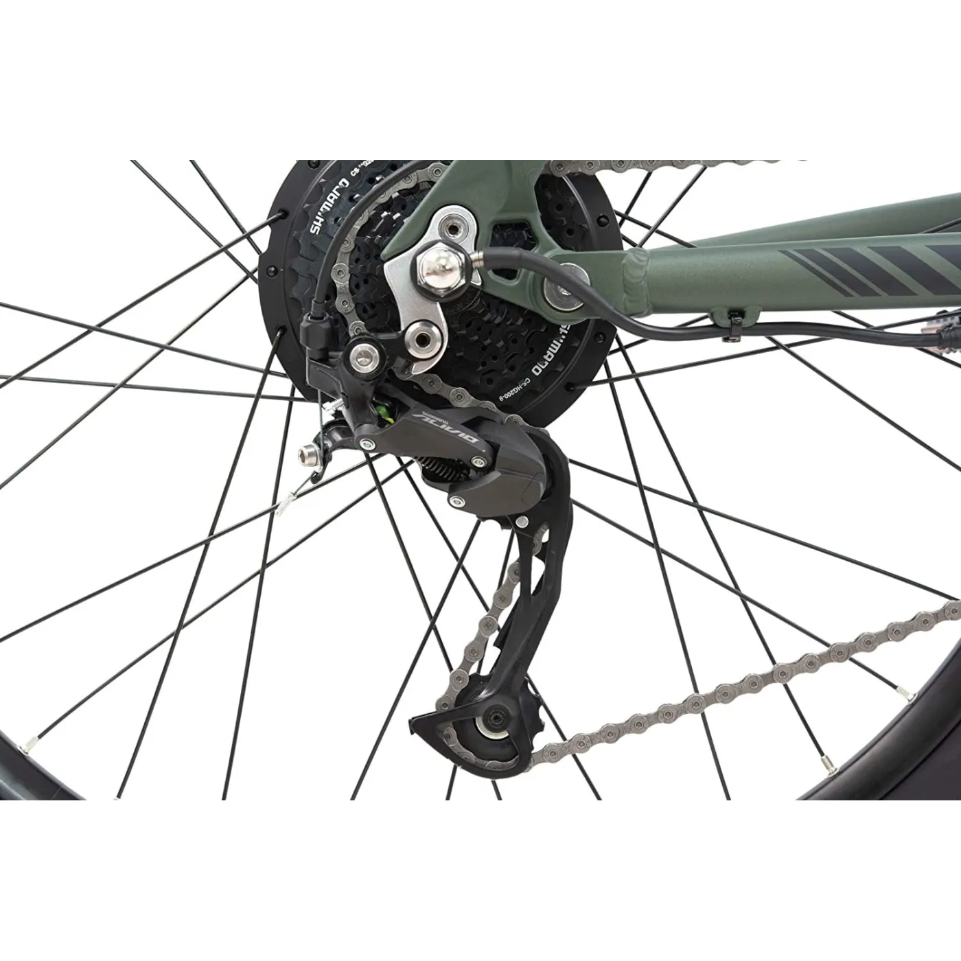 Wyposażony w tylny silnik 250 W, który zapewnia długą żywotność i wysoką wydajność oraz może osiągnąć maksymalną wspomaganą prędkość do 25 km / h i akumulator: 36V 14 Ah 504 Wh zintegrowany w ramie pozwoli na jazdę zapewniając stabilność na wszystkich typach dróg. Dodatkowo przerzutki Shimano Alivio oraz Shimano Altus pozwalają w łatwy sposób wybrać 27 prędkości dla każdego rodzaju drogi, którą chcesz podróżować.