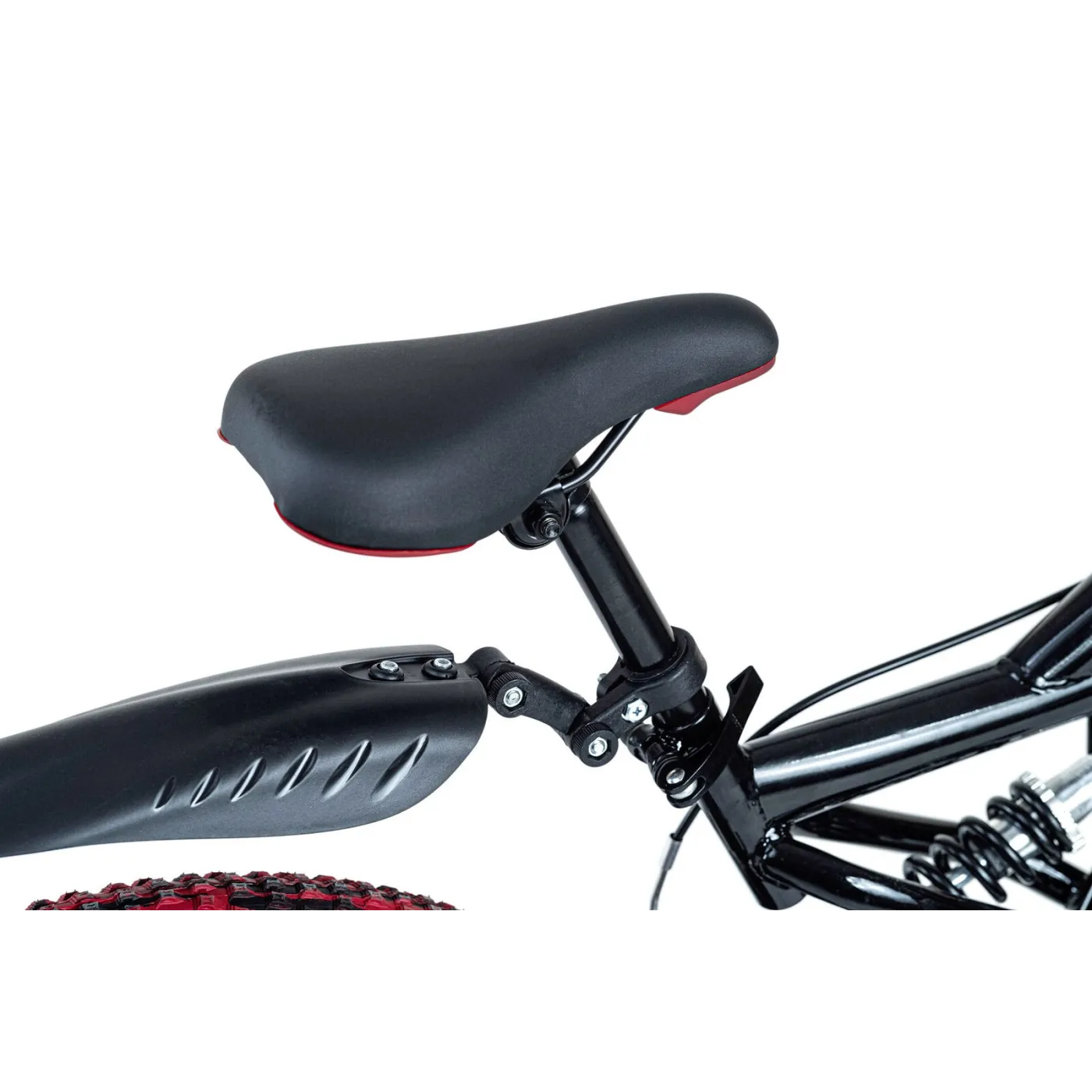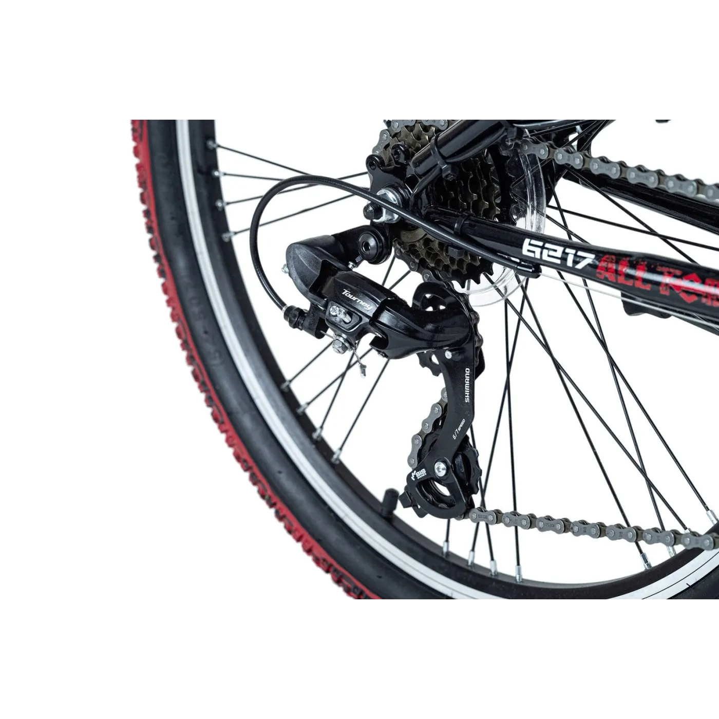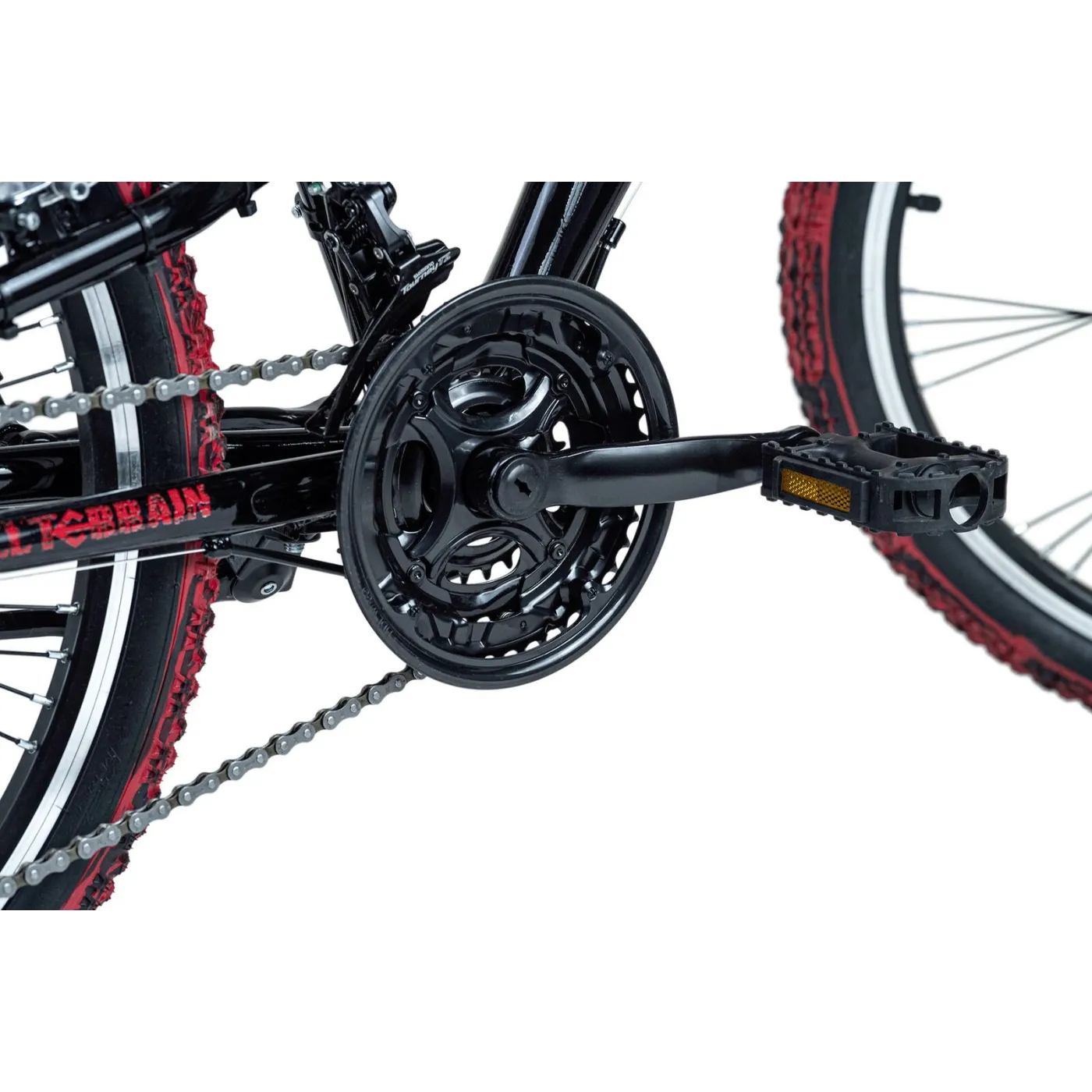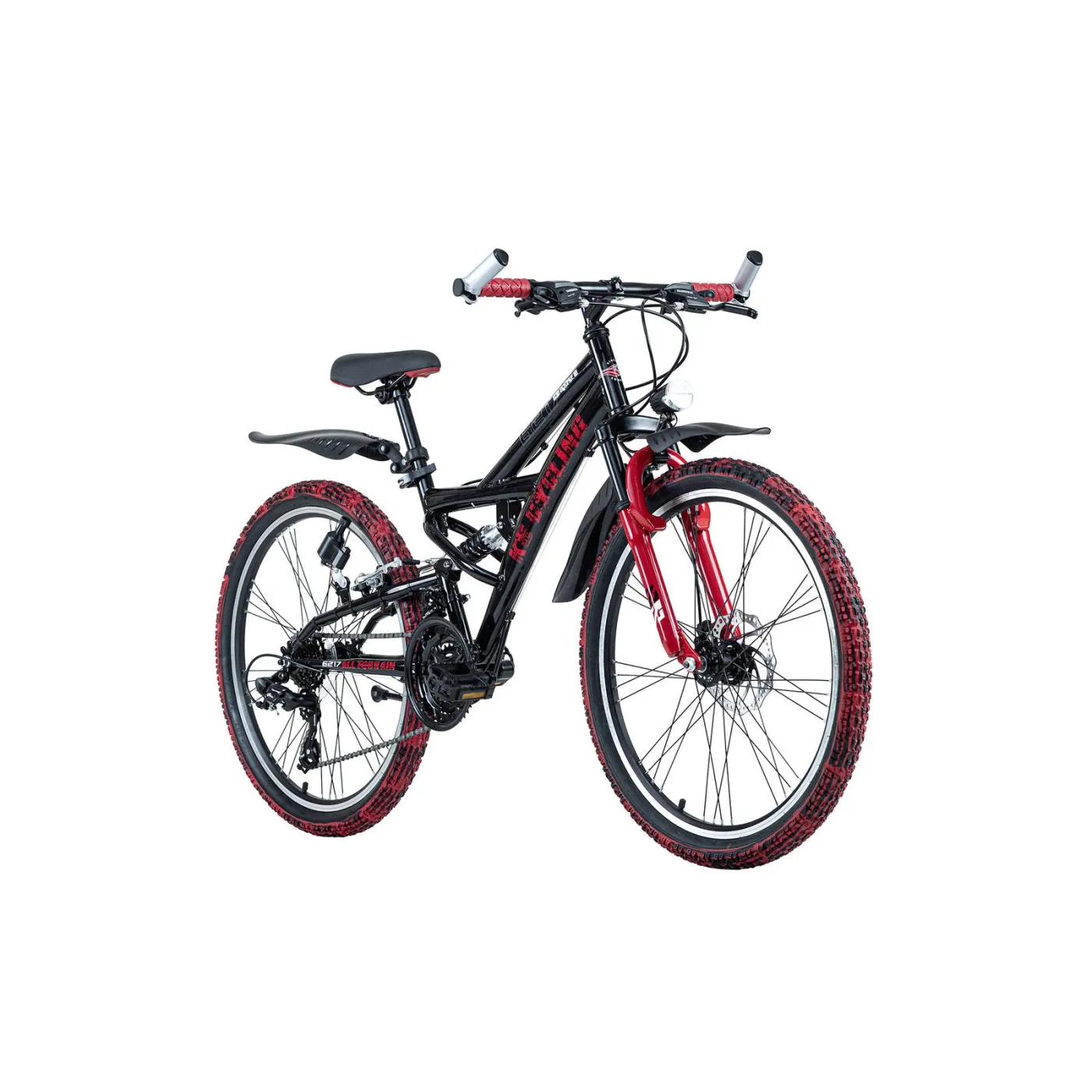Świetny rower górski z pełną amortyzacją od KS Cycling! CRUSHER sprawia, że jazda na rowerze sprawia samą przyjemność! Podstawę stanowi czerwony widelec amortyzowany i czarna amortyzowana rama. Opony Muddy Red i modne naklejki "Destroyed" dopełniają wyglądu tego roweru górskiego.