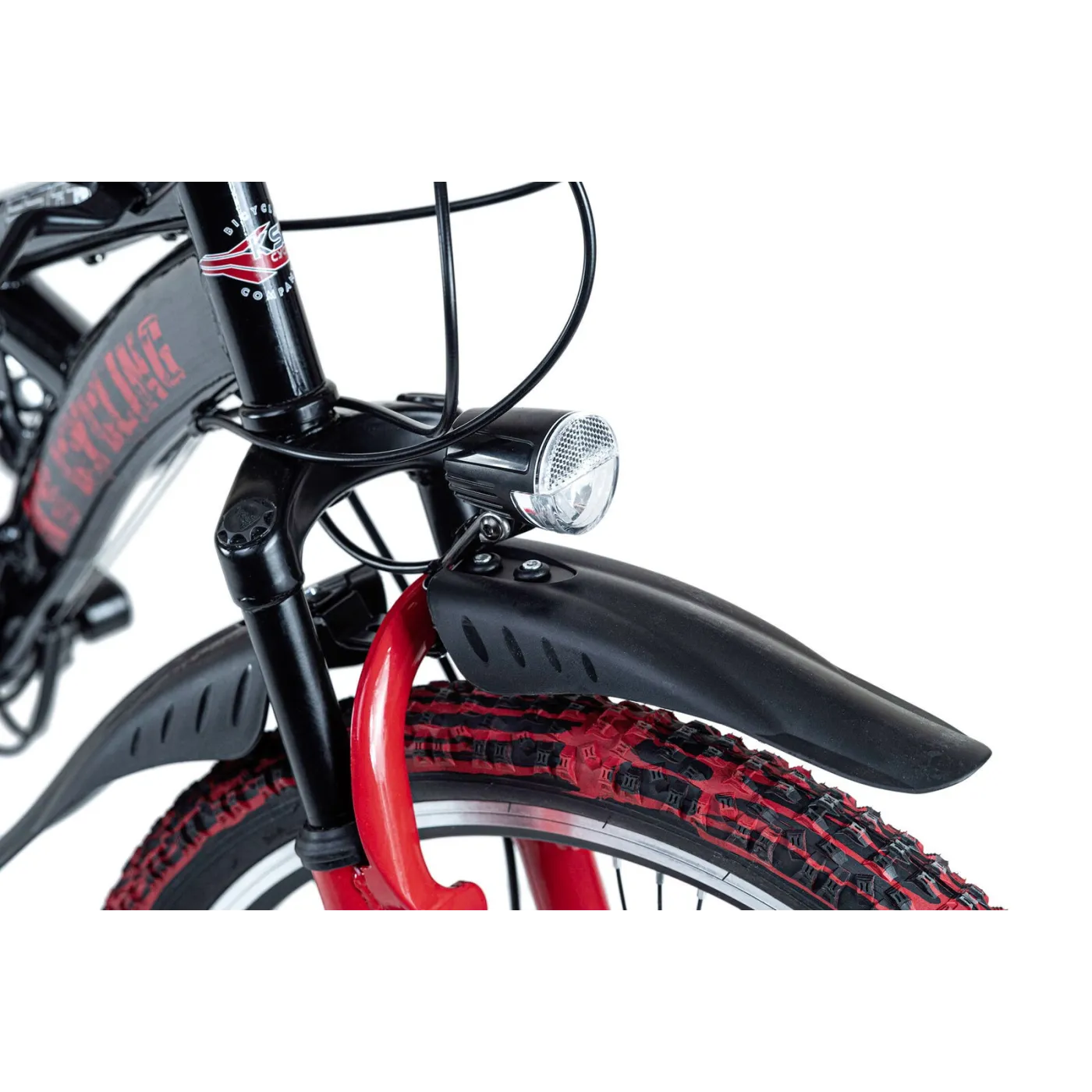 Ten 24-calowy rower górski ma wszystko, czego potrzebujesz! Rower ten jest wyposażony w oświetlenie na dynamo. Dzięki komponentom marki Shimano dziecko może z łatwością zmieniać biegi i regulować je w zależności od ukształtowania terenu oraz własnych preferencji. Ten rower posiada również hamulce V-brake z tyłu oraz tarczowe z przodu dla zwiększenia bezpieczeństwa podróżowania.