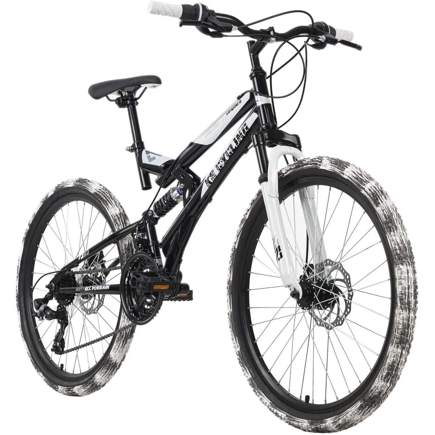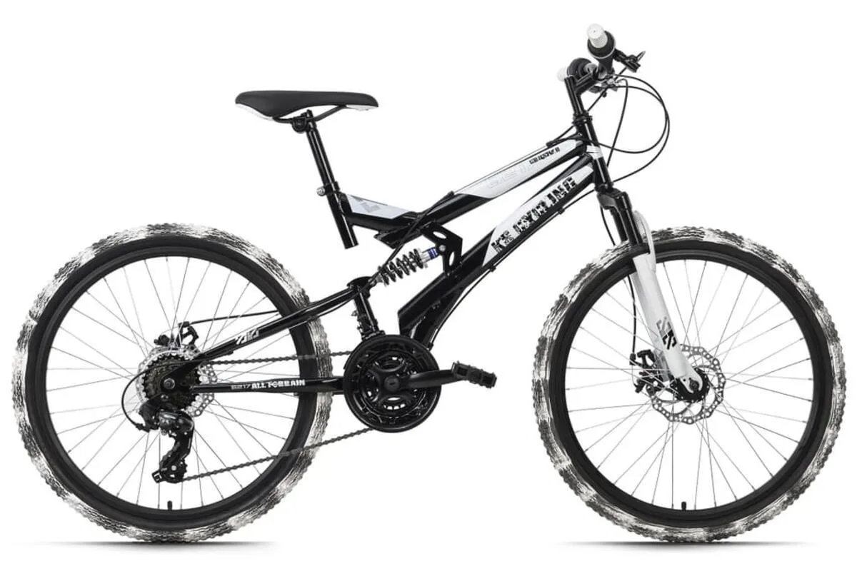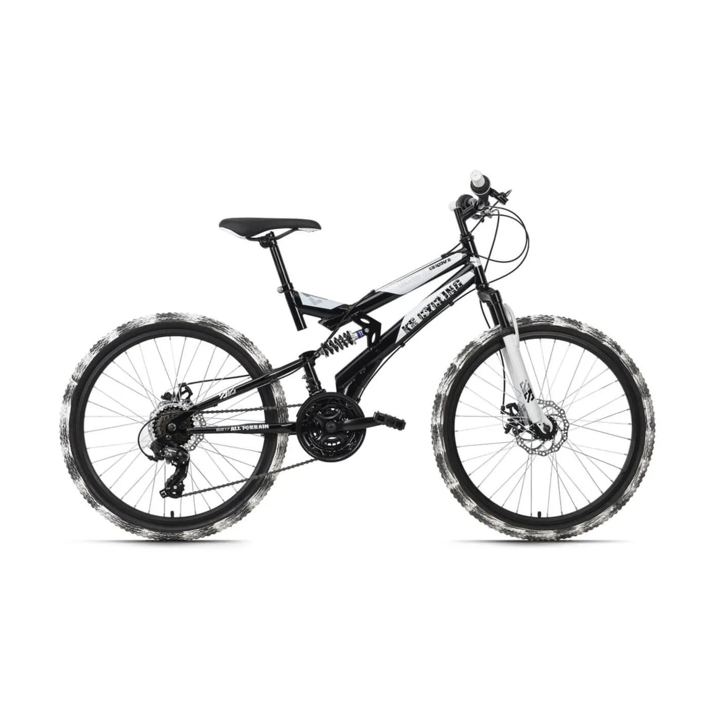 Idealny w drodze do szkoły lub na weekendowy wypad do lasu. 24-calowy młodzieżowy rower górski CRUSHER firmy KS Cycling jest idealny do rozpoczęcia kolarstwa górskiego. Czarna rama z białymi detalami jest stylizowana, dopasowana do opon i przyciąga uwagę wszystkich. Każda opona jest wyjątkowa, a wyposażenie techniczne roweru dziecięcego nie pozostawia nic do życzenia. Rower górski z pełnym zawieszeniem jest wyposażony w hamulce tarczowe, a 21-biegowe przełożenia z klamkomanetkami uzupełniają pakiet.