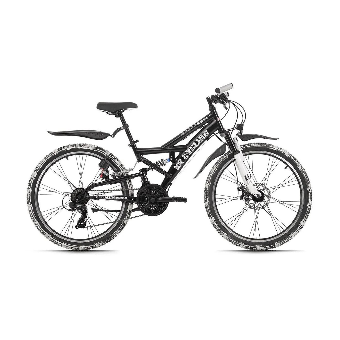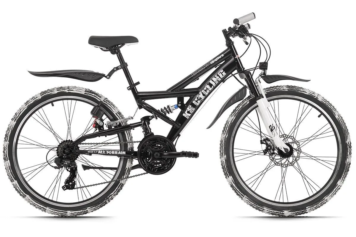 Idealny w drodze do szkoły lub na weekendowy wypad. 24-calowy młodzieżowy rower górski CRUSHER firmy KS Cycling jest idealny do rozpoczęcia kolarstwa górskiego. Czarna rama z białymi detalami jest stylizowana, dopasowana do opon i przyciąga uwagę wszystkich. Każda opona jest wyjątkowa, a wyposażenie techniczne roweru dziecięcego nie pozostawia nic do życzenia. Rower górski z pełnym zawieszeniem jest wyposażony w hamulce tarczowe z przodu oraz v-brake z tyłu, a 21-biegowe przełożenia z obrotowymi manetkami uzupełniają pakiet.