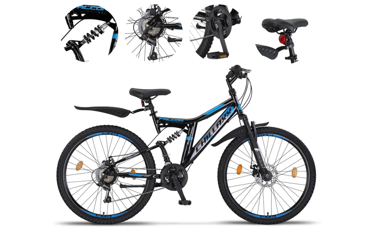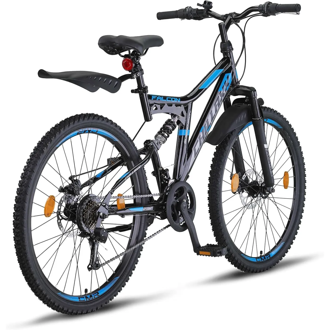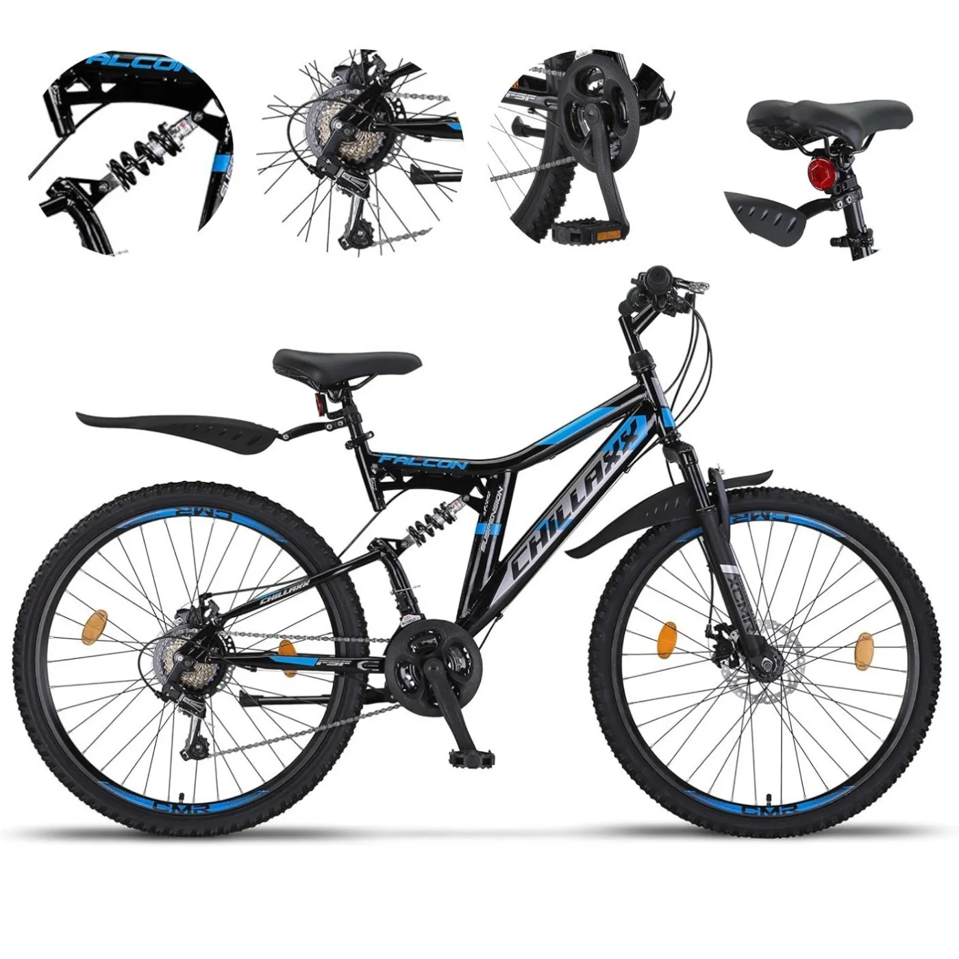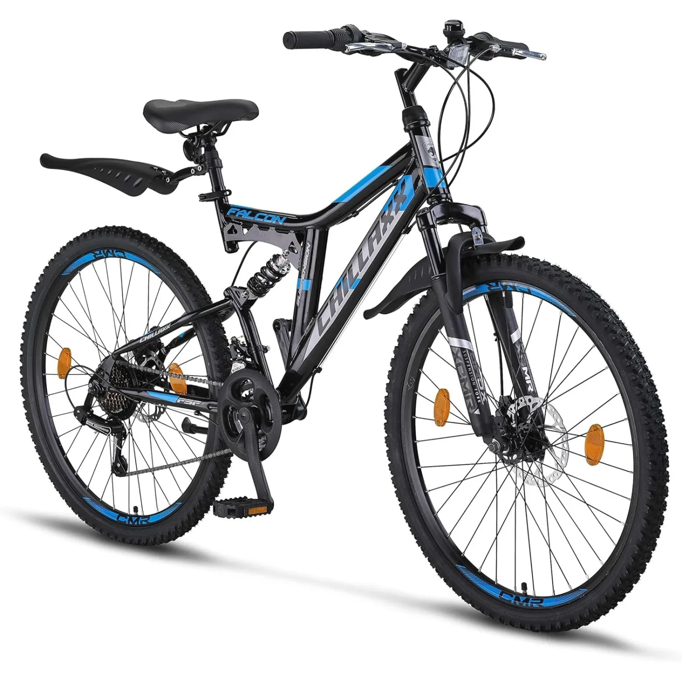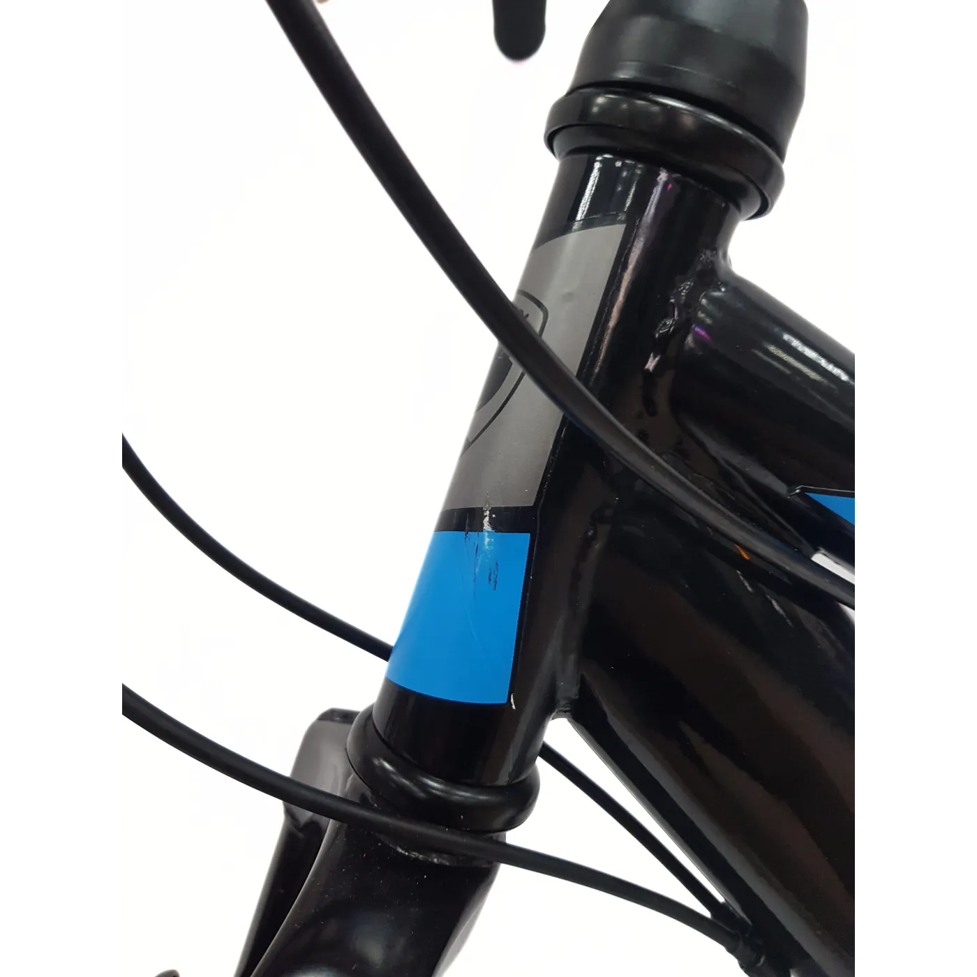 🔧 Koła o rozmiarze 26x1.95 doskonale sprawdzają się na zróżnicowanej nawierzchni, łącząc dobrą przyczepność z niskimi oporami toczenia. Bieżnik pozwala na pewne prowadzenie zarówno na suchej ziemi, jak i w lekkim błocie, a sam rozmiar kół sprzyja zwrotności, co czyni rower wyjątkowo wszechstronnym. Czarny kolor w połysku z niebieskimi wstawkami nadaje całości dynamicznego, nowoczesnego wyglądu, który przyciąga uwagę już na pierwszy rzut oka.