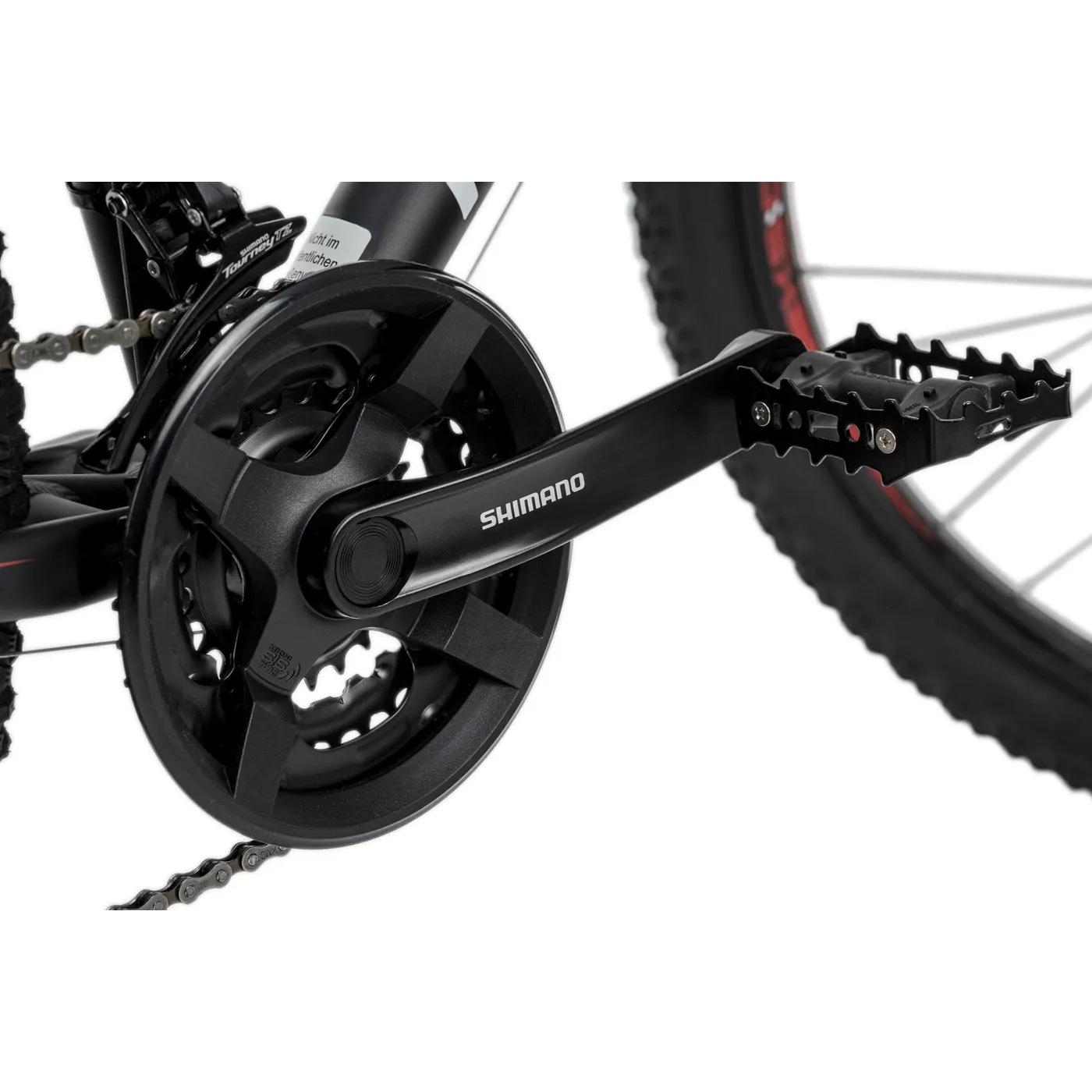 👉 Model ten wyposażony jest w hamulce tarczowe mechaniczne z przodu i z tyłu, co zapewnia doskonałą kontrolę nad rowerem oraz skuteczne hamowanie w każdej sytuacji. 21-biegowa przerzutka Shimano pozwala na płynną zmianę przełożeń, co umożliwia dostosowanie jazdy do warunków terenowych i indywidualnych preferencji.
