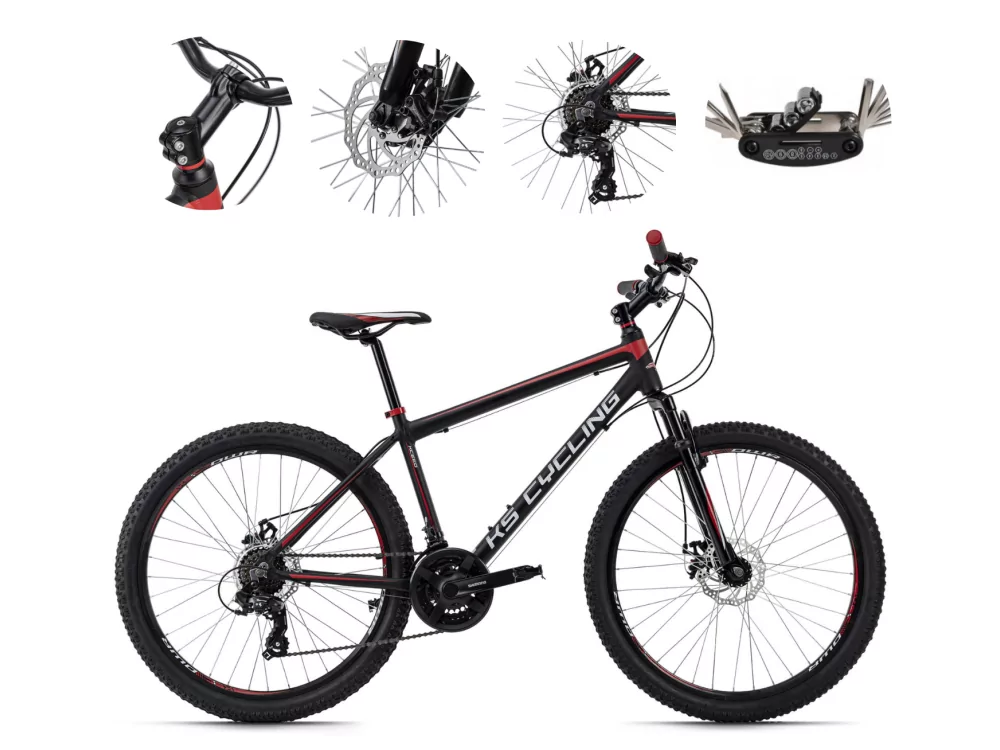 ✔️ Manetka cynglowa pozwala na precyzyjne sterowanie biegami, co zapewnia wygodną jazdę i gwarantuje płynne przyspieszanie i zwalnianie w trakcie trasy. Duże opony o wymiarach 26" x 2,10" (54-559) zapewniają doskonałą przyczepność zarówno na stromych zboczach, jak i na kamienistych trasach, co sprawia, że jazda jest stabilna i komfortowa nawet w trudnym terenie.
