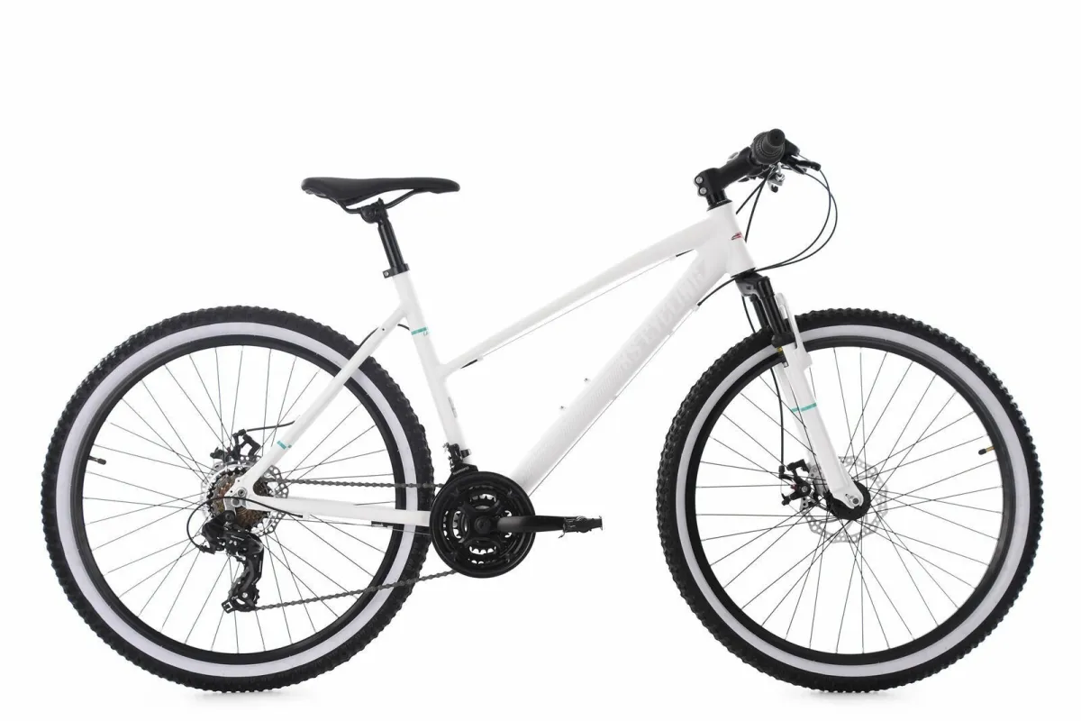 Kolarstwo górskie ze stylem dla kobiet: 26-calowy aluminiowy hardtail MTB „ LARRIKIN ” firmy KS Cycling nie jest zwykłym rowerem. Dzięki sportowemu designowi, oponom z białymi ściankami i hydroformowanymi rurami ramy, ten rower przyciąga wzrok na każdej trasie! umożliwiają bezpieczne hamowanie w każdej sytuacji, a amortyzowany widelec zapewnia wystarczający komfort. Ponadto rower jest wyposażony w 21-biegową manetki SHIMANO.
