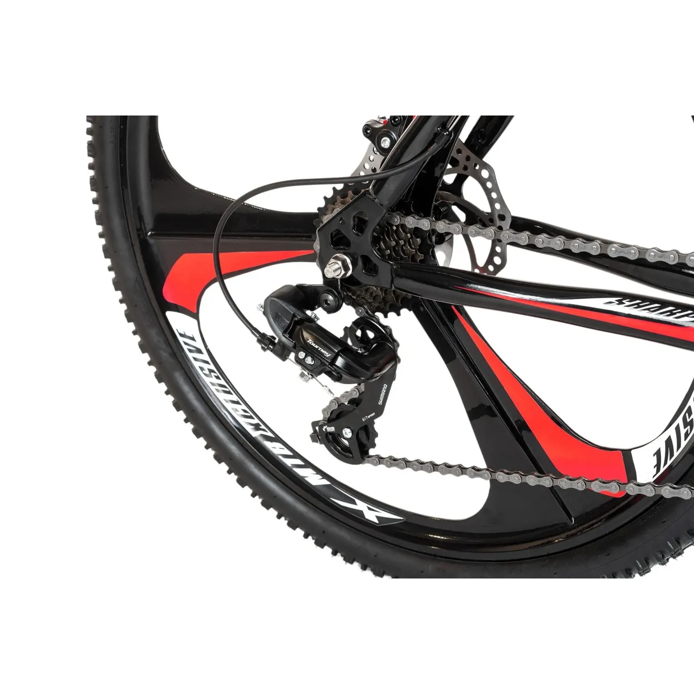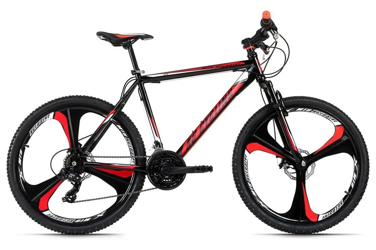 Dobrze przemyślany: 26" hardtail MTB "SHARP" od KS Cycling. Rower jest całości w kolorze czarnym - odświeżony czerwonymi detalami, które przyciągają uwagę.