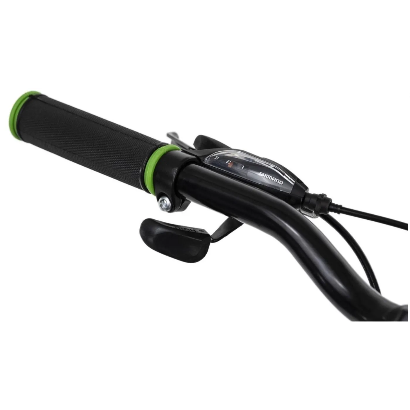 Rower jest wyposażony w 21- szybka przerzutka z komponentami SHIMANO. Niezbędne hamowanie zapewniają mechaniczne hamulce tarczowe z przodu i z tyłu. Ergonomiczne siodełko idealnie wpasowuje się w ogólny obraz.