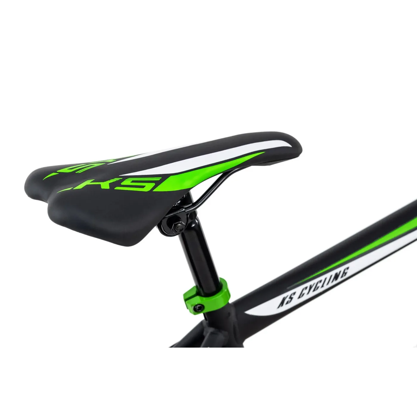 Oprócz widelca, manetki, podkładki dystansowej z przodu, zaciski podsiodłowe i siodełko również nadają zielone akcenty.