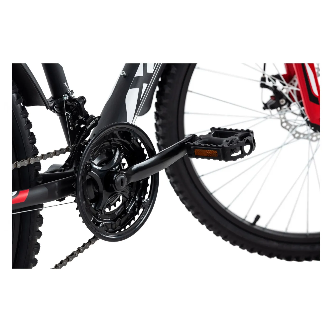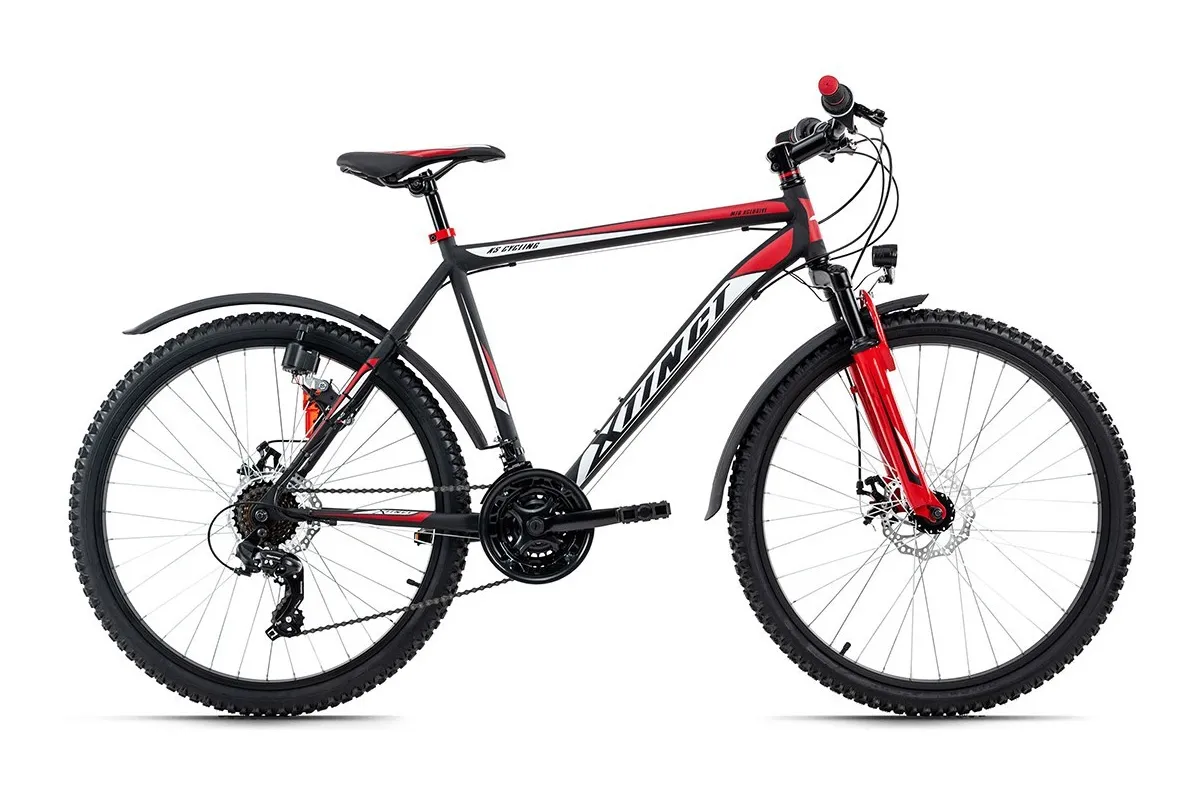 Zawsze gotowy, aby dać z siebie wszystko: czarny matowy rower górski XTINCT firmy KS Cycling zawsze prezentuje się znakomicie z naklejkami w kolorze czerwonym i białym. Wyposażenie eleganckiego roweru jest również przekonujące!