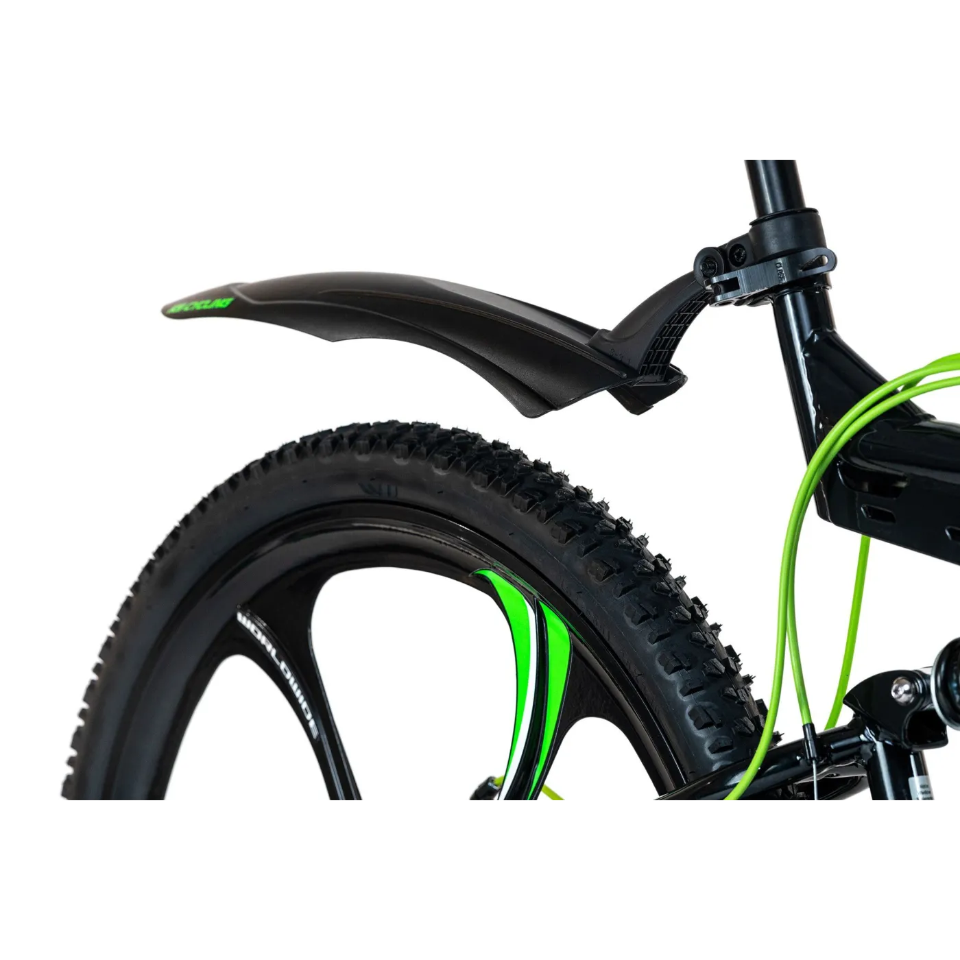 👉 Opony 26" x 2,10" zapewniają dobrą przyczepność i stabilność na różnorodnym podłożu, zwiększając komfort jazdy i kontrolę nad rowerem. Dodatkowo, rower posiada błotniki i dzwonek, co zwiększa bezpieczeństwo podczas jazdy zarówno w dzień, jak i w nocy.
