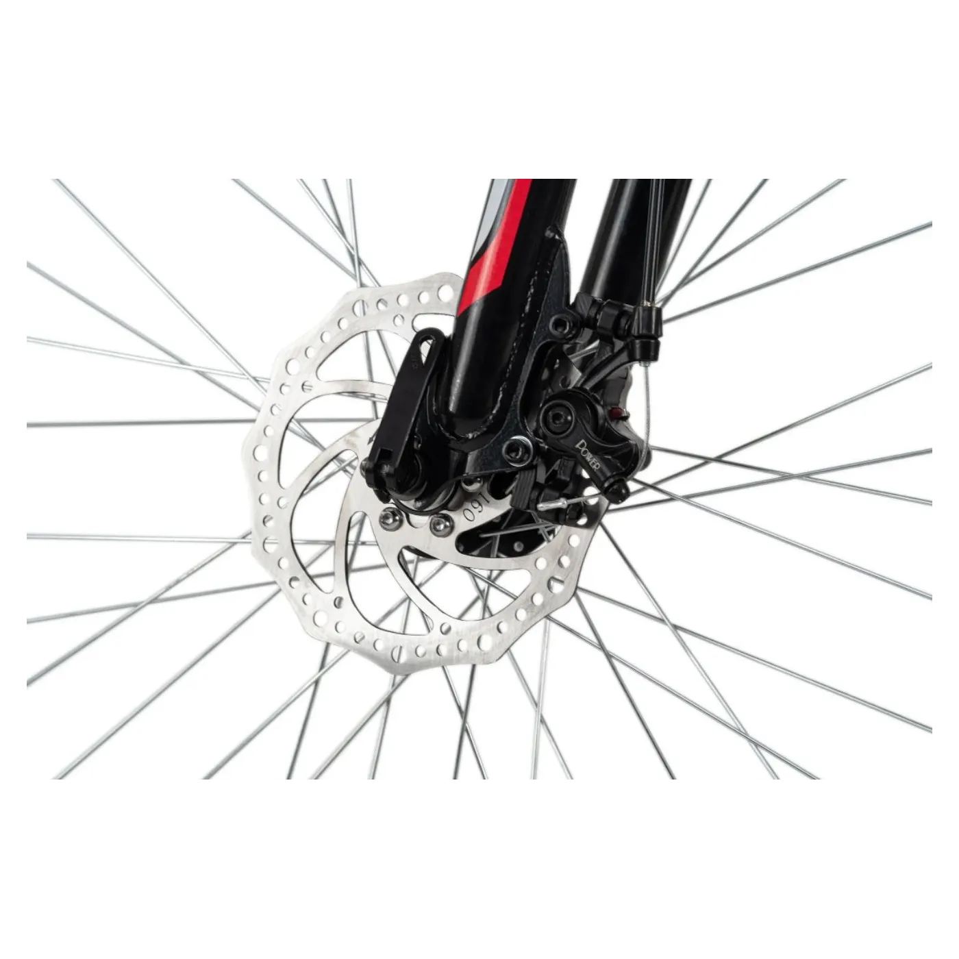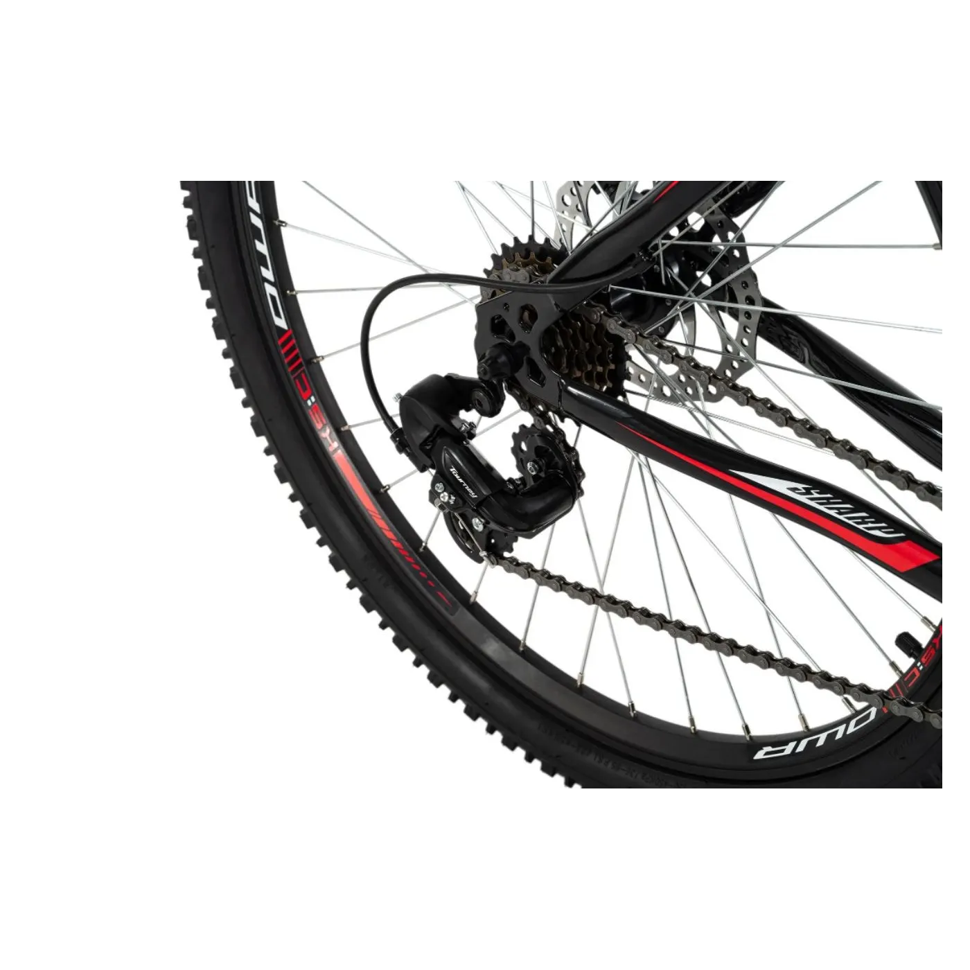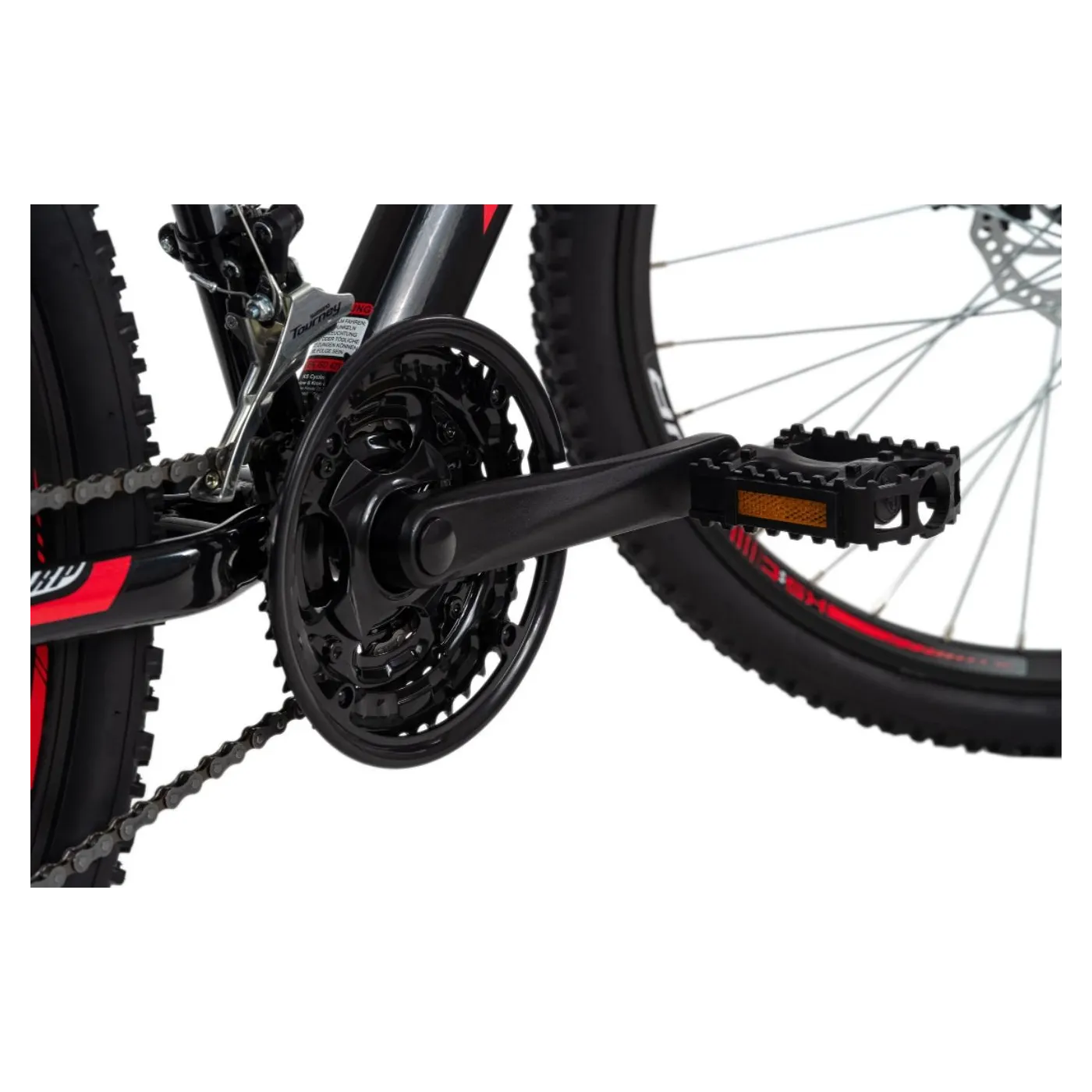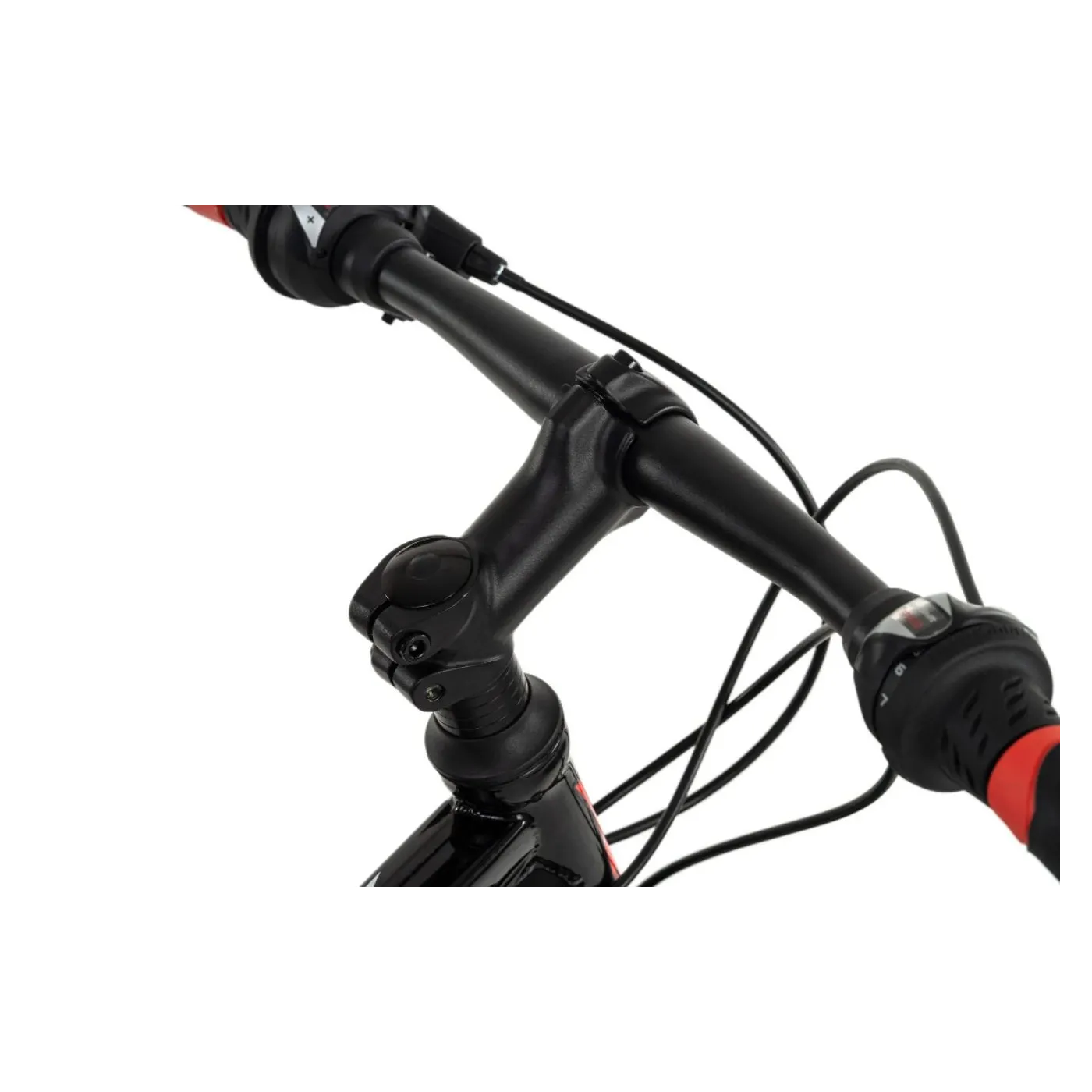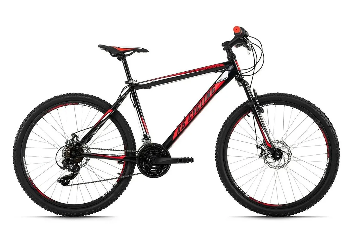 Hamulce tarczowe gwarantują bezpieczne hamowanie w każdej sytuacji a widelec amortyzowany zapewnia wysoki komfort jazdy. Rower górski jest również wyposażony w 21-biegową przerzutkę SHIMANO.