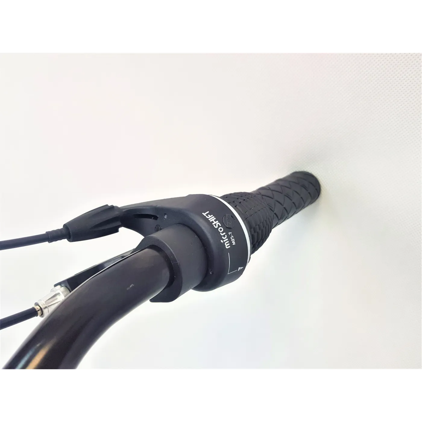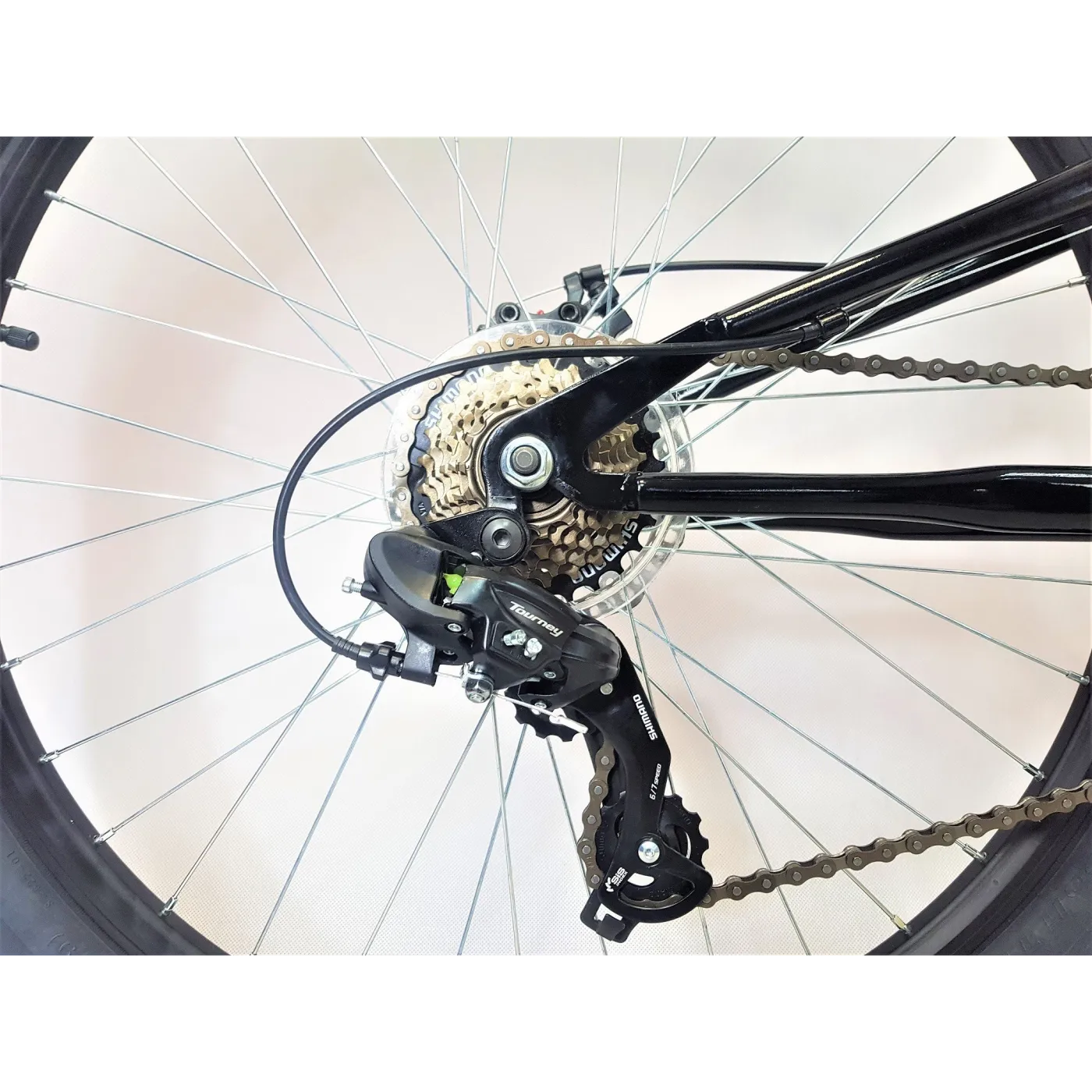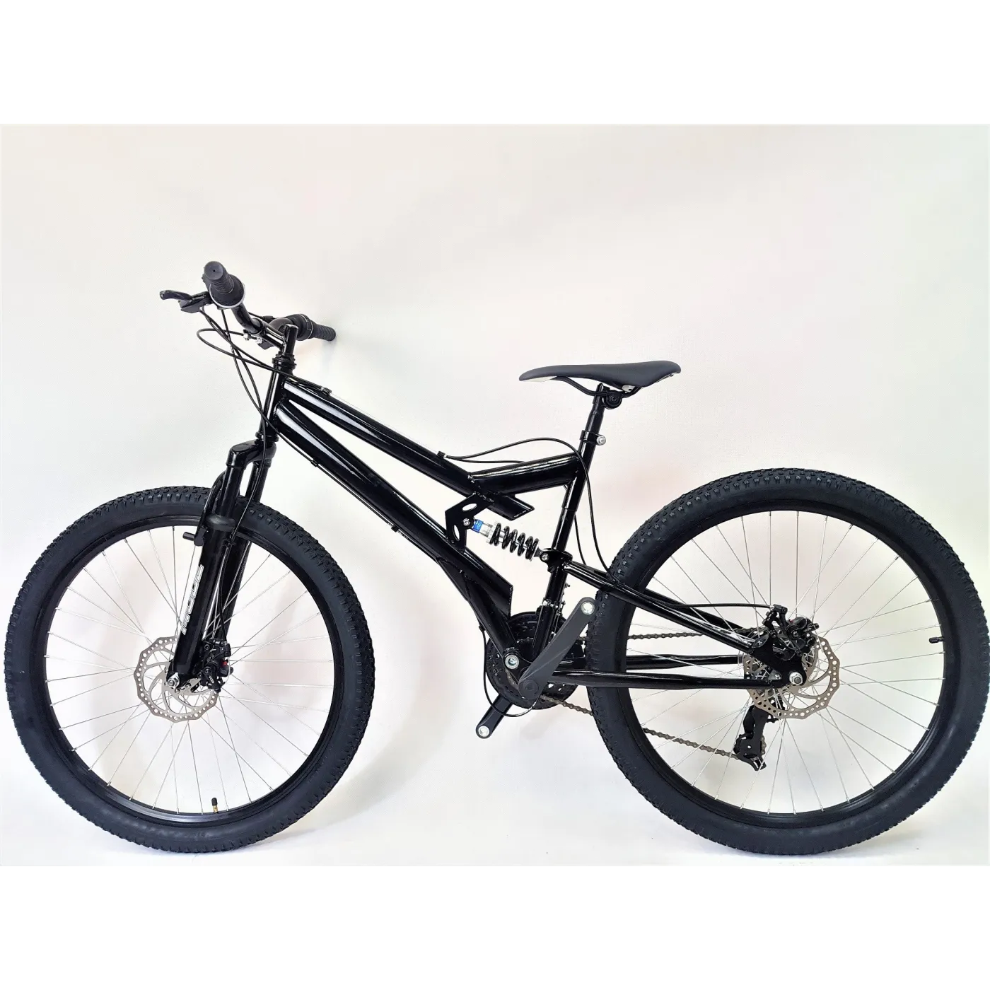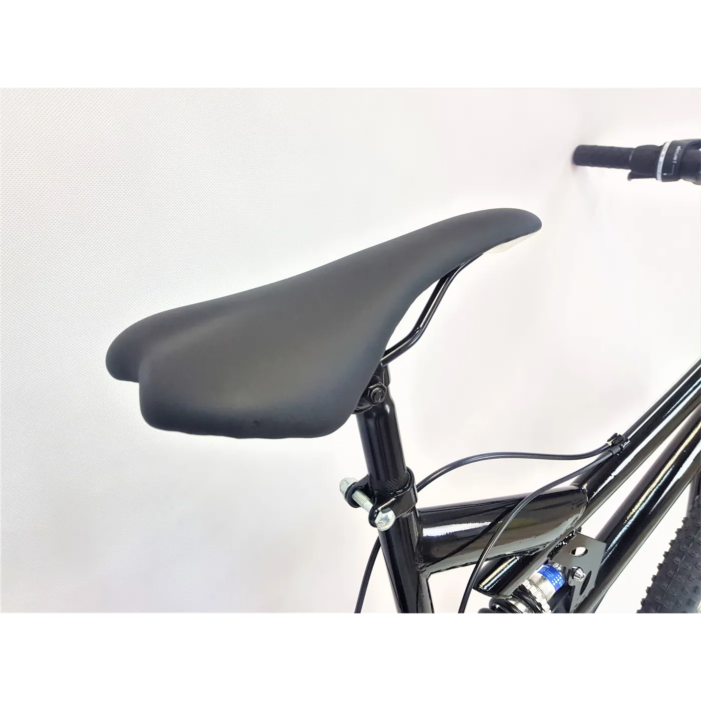 Rower MTB z pełnym zawieszeniem jest wyposażony w 21-biegową przerzutkę obsługiwaną za pomocą obrotowej dźwigni zmiany biegów. Mechaniczne hamulce tarczowe na przednich i tylnych kołach zapewniają dobre hamowanie.