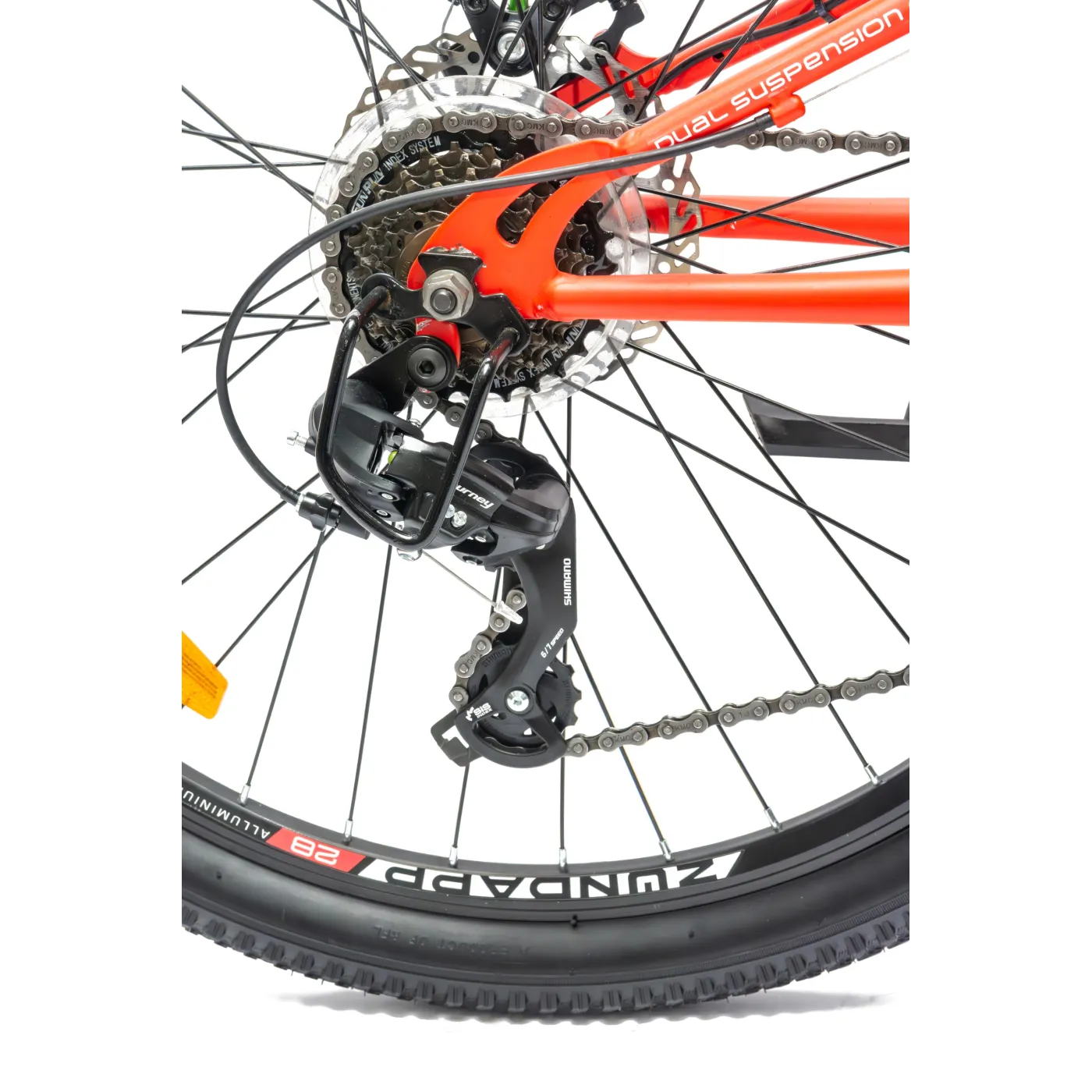 👌 Pełne zawieszenie roweru zapewni Ci komfort podczas jazdy po nierównym terenie, chroniąc Twój kręgosłup i reagując skutecznie na wszelkie nierówności. Amortyzator ze sprężyną gazową można dostosować do swojej wagi, co zapewni Ci maksymalny komfort podczas jazdy. Z przodu roweru znajdziesz widelec amortyzowany Zoom, który odciąży Twoje ramiona i barki, sprawiając że jazda będzie jeszcze przyjemniejsza.