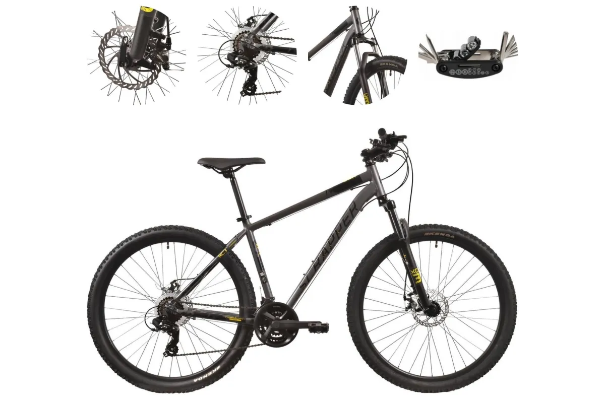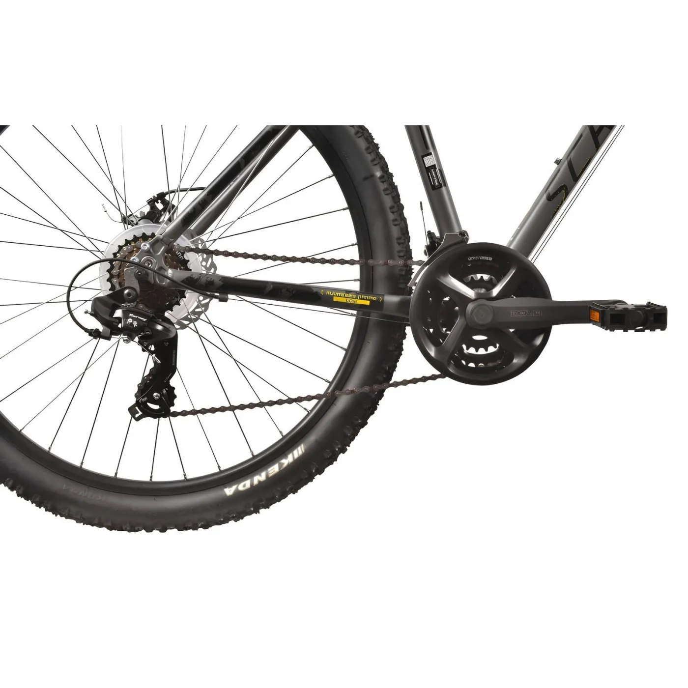 🛡️ Zastosowanie wydajnych hamulców tarczowych mechanicznych oraz amortyzowanego widelca zapewnia nie tylko bezpieczeństwo, ale także komfort jazdy po nierównościach. Opony o rozmiarze 27,5" x 2,10", dostosowane do trudnych warunków terenowych, oferują znakomitą przyczepność i stabilność na szlakach.