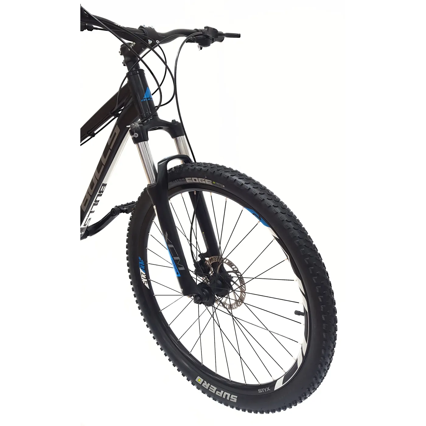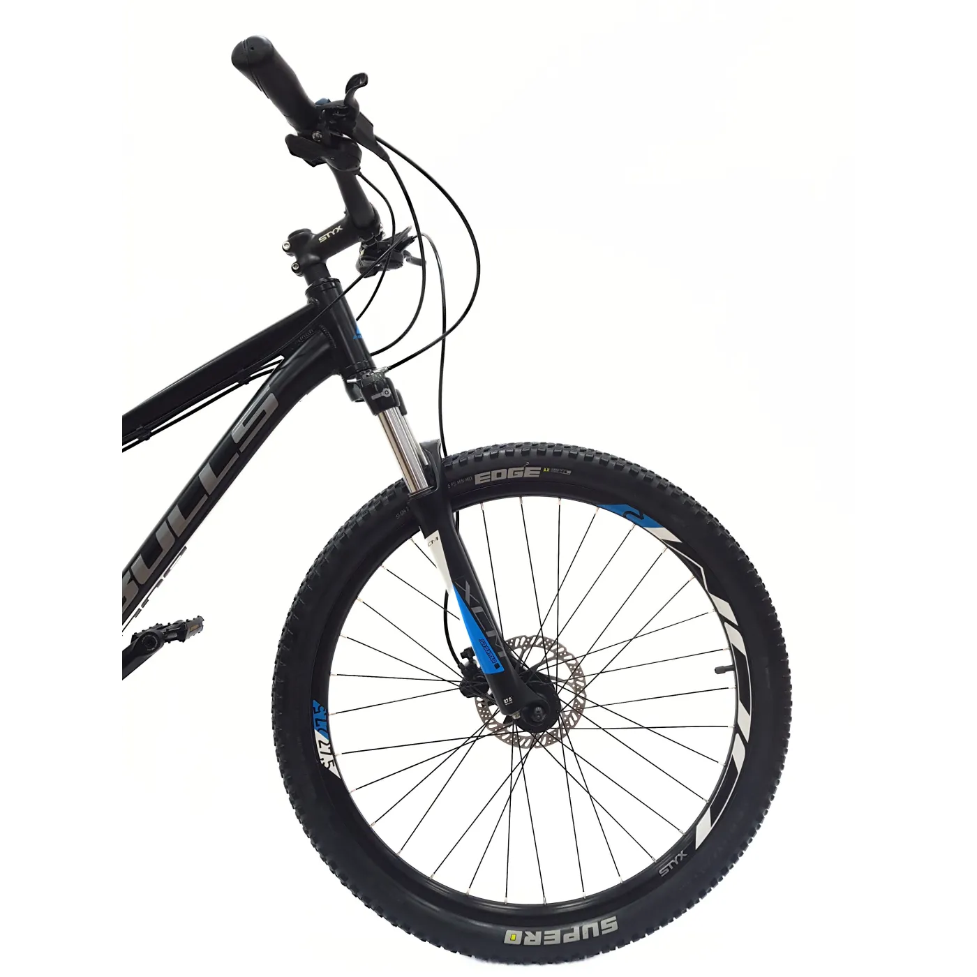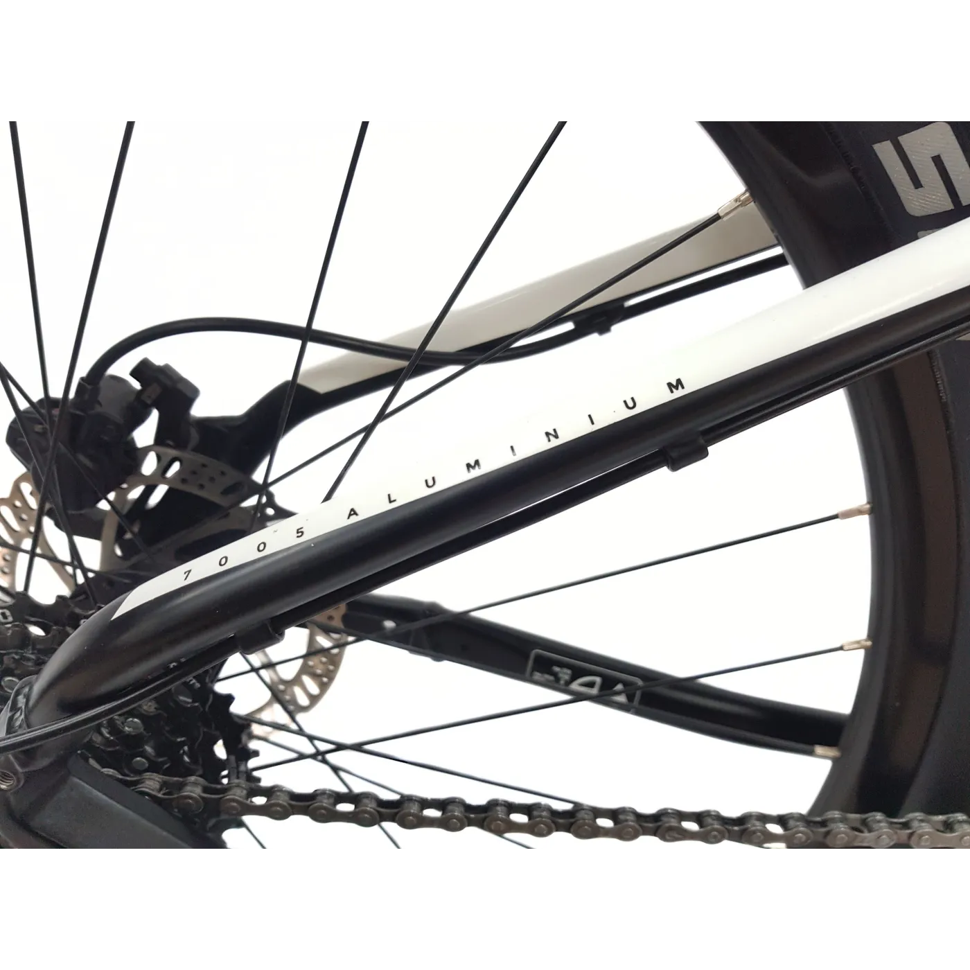 🚴♂️ Aluminiowa rama to podstawa tego solidnego roweru, który łączy lekkość z wytrzymałością. Geometria konstrukcji została zaprojektowana z myślą o komforcie podczas długich tras oraz stabilności przy bardziej dynamicznej jeździe terenowej. Malowanie w wersji czarno-białej matowej z szaro-niebieskimi wstawkami nadaje rowerowi nowoczesny, agresywny charakter, który przyciąga wzrok i wyróżnia się na tle klasycznych modeli.