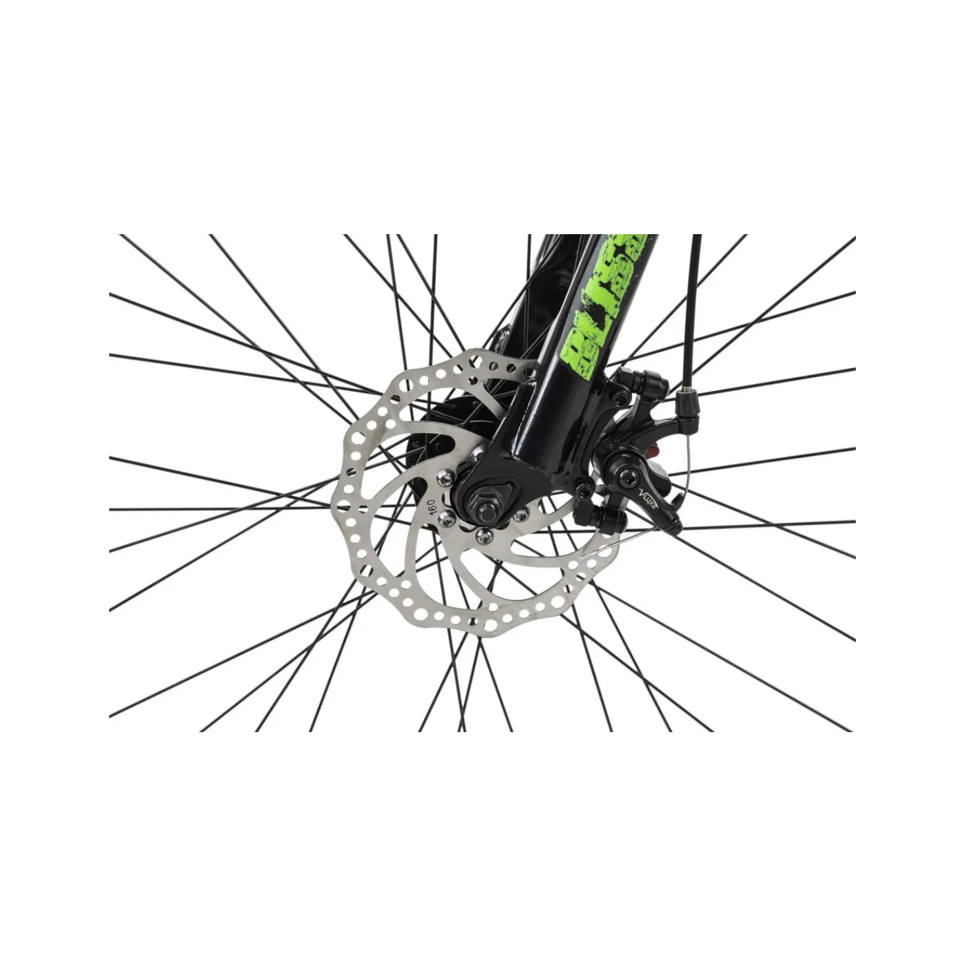 Jaskrawe zielone naklejki na czarnej matowej ramie przyciągają wzroki sprawiają, że nie można przejść obojętnie obok roweru BLISS PRO.