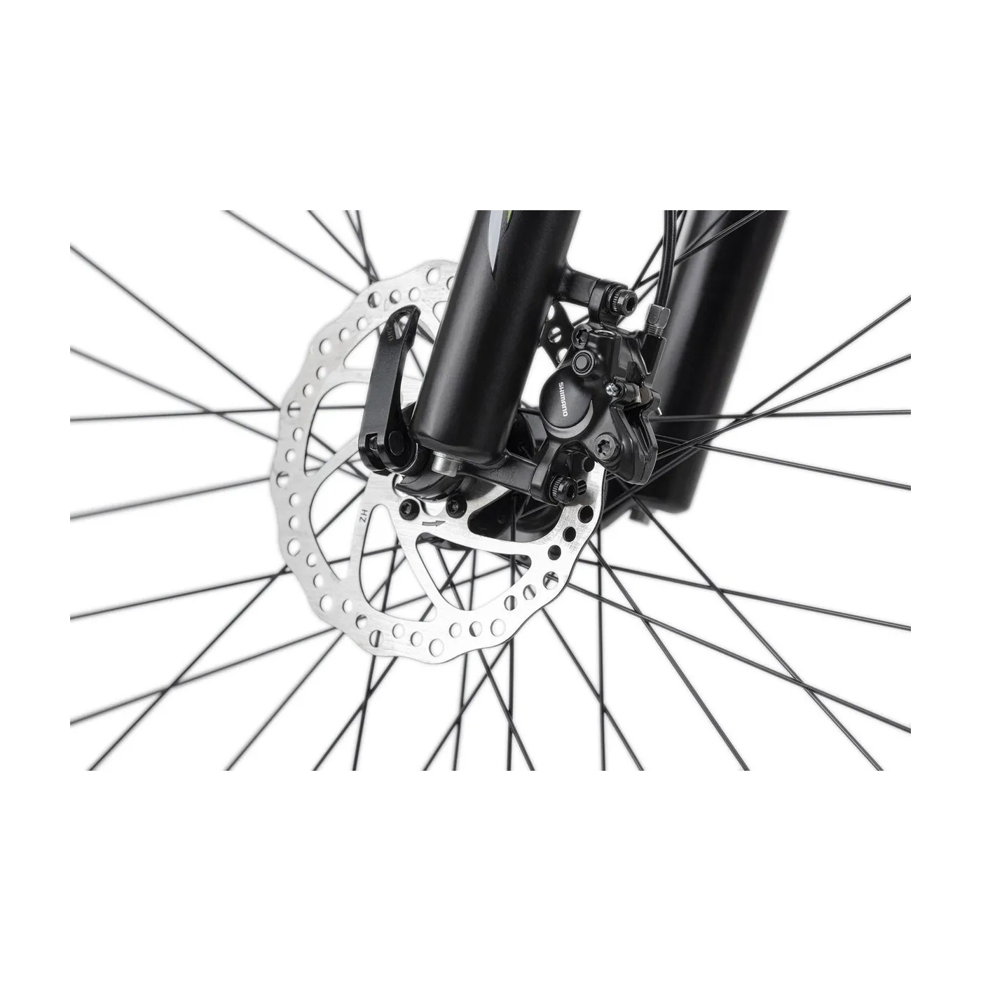 Szersze opony oferują dodatkową amortyzację oraz większą powierzchnię pozwalając na lepszą przyczepność. Hydrauliczne hamulce tarczowe SHIMANO umożliwiają bezpieczne hamowanie w każdej sytuacji, a amortyzowany widelec zapewnia wystarczający komfort. Rower jest również wyposażony w 24-biegową manetkę SHIMANO.
