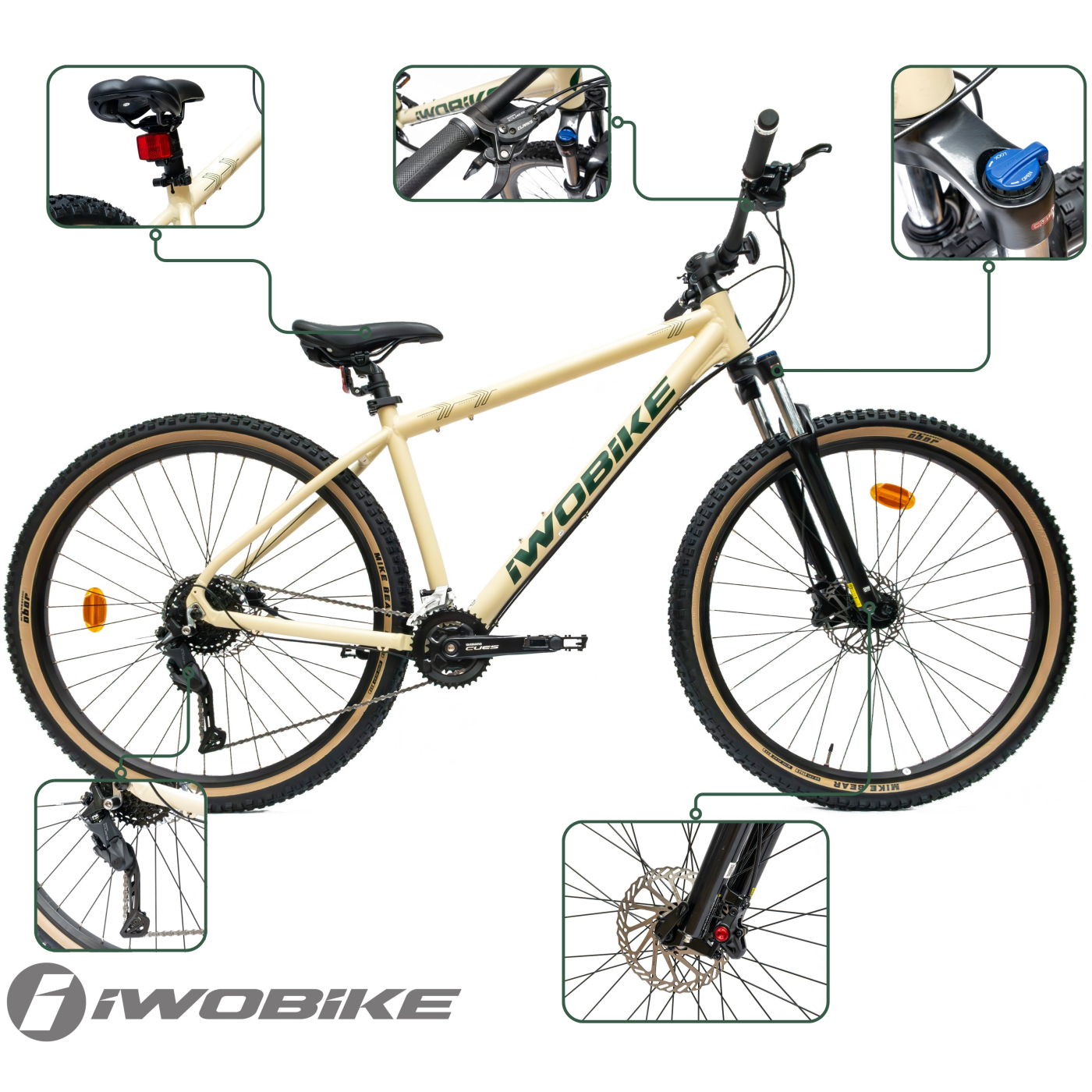 Duże koła i szerokie opony terenowe zapewniają doskonałą trakcję, stabilność i komfort na wymagających nawierzchniach. 🌄🌧️