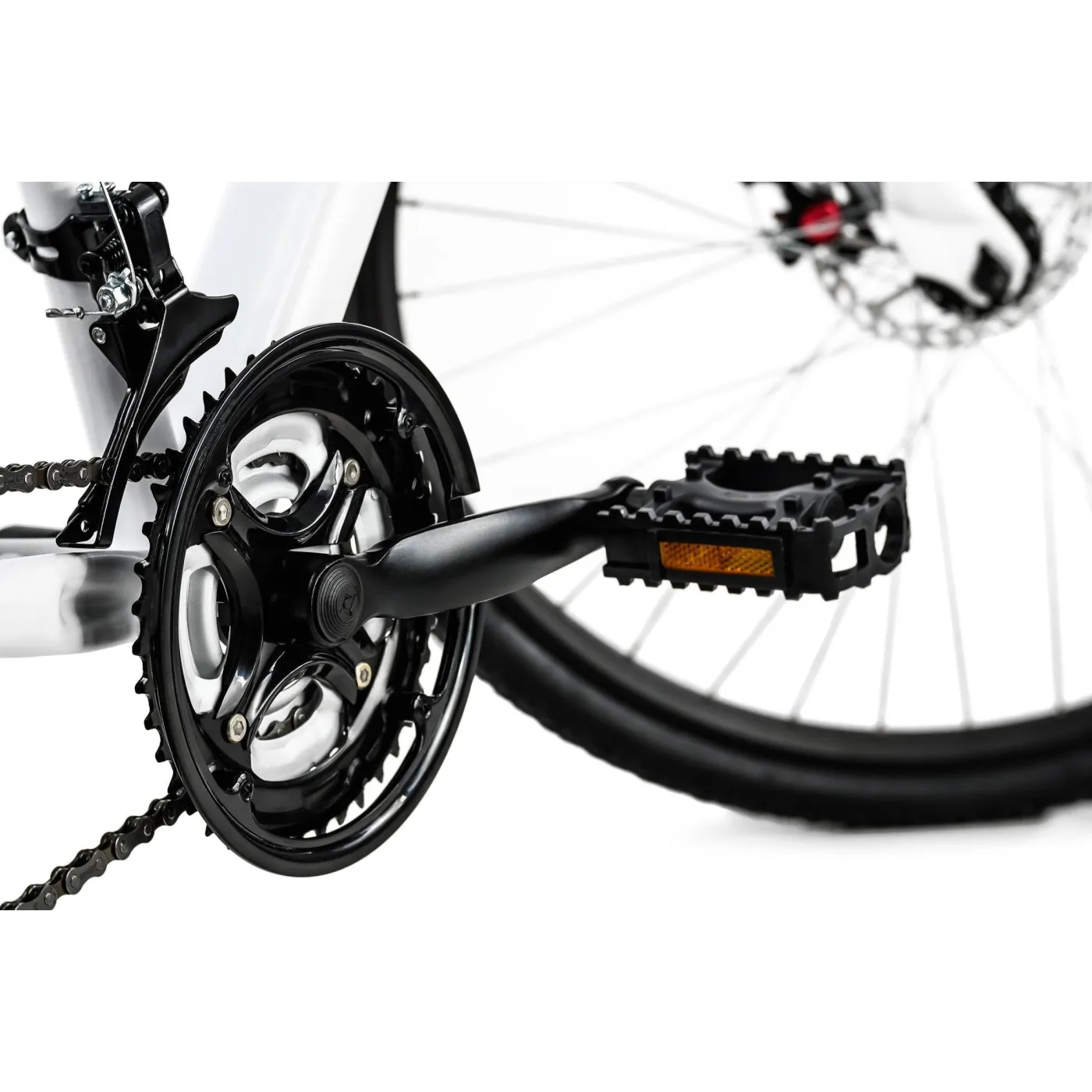 Przekona nawet tych bardzo wymagających rowerzystów. Dzięki 21-biegowej skrzyni biegów SHIMANO, mechanicznym hamulcom tarczowym z tyłu i z przodu, amortyzowanemu widelcowi oraz dużym kołom otrzymujesz solidnie wyposażony rower, który będzie Twoim wiernym towarzyszem podczas wielu tras.