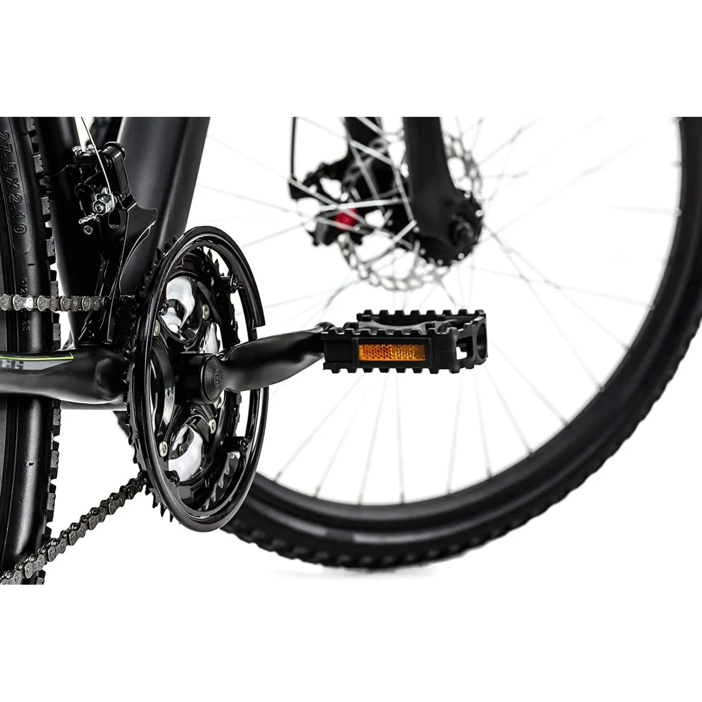 Górski rower Heist idealnie sprawdzi się w trudniejszych terenach, posiada 21 biegów, hamulce tarczowe Clarks oraz amortyzowany widelec przedni. Dzięki takiemu rozwiązaniu rower jest zwinny i wygodny. Dodatkowym atutem jest ponadczasowe wykończenie - czarna matowa rama z niewielkimi wstawkami w kolorze szarym i zielonym.