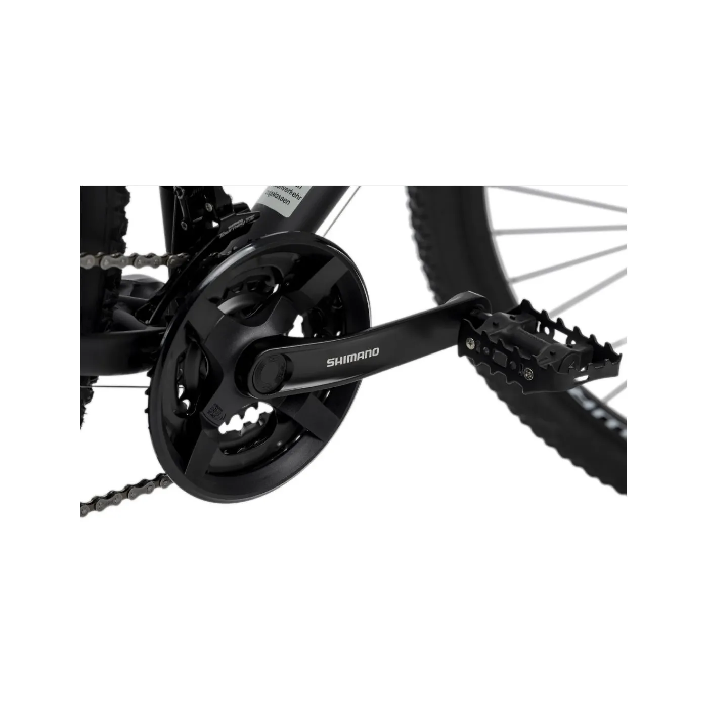 Rower jest wyposażony w 21-biegową przerzutkę z komponentami SHIMANO. Niezbędne hamowanie zapewniają mechaniczne hamulce tarczowe z przodu iz tyłu. Ergonomiczne siodełko idealnie wpasowuje się w ogólny obraz.