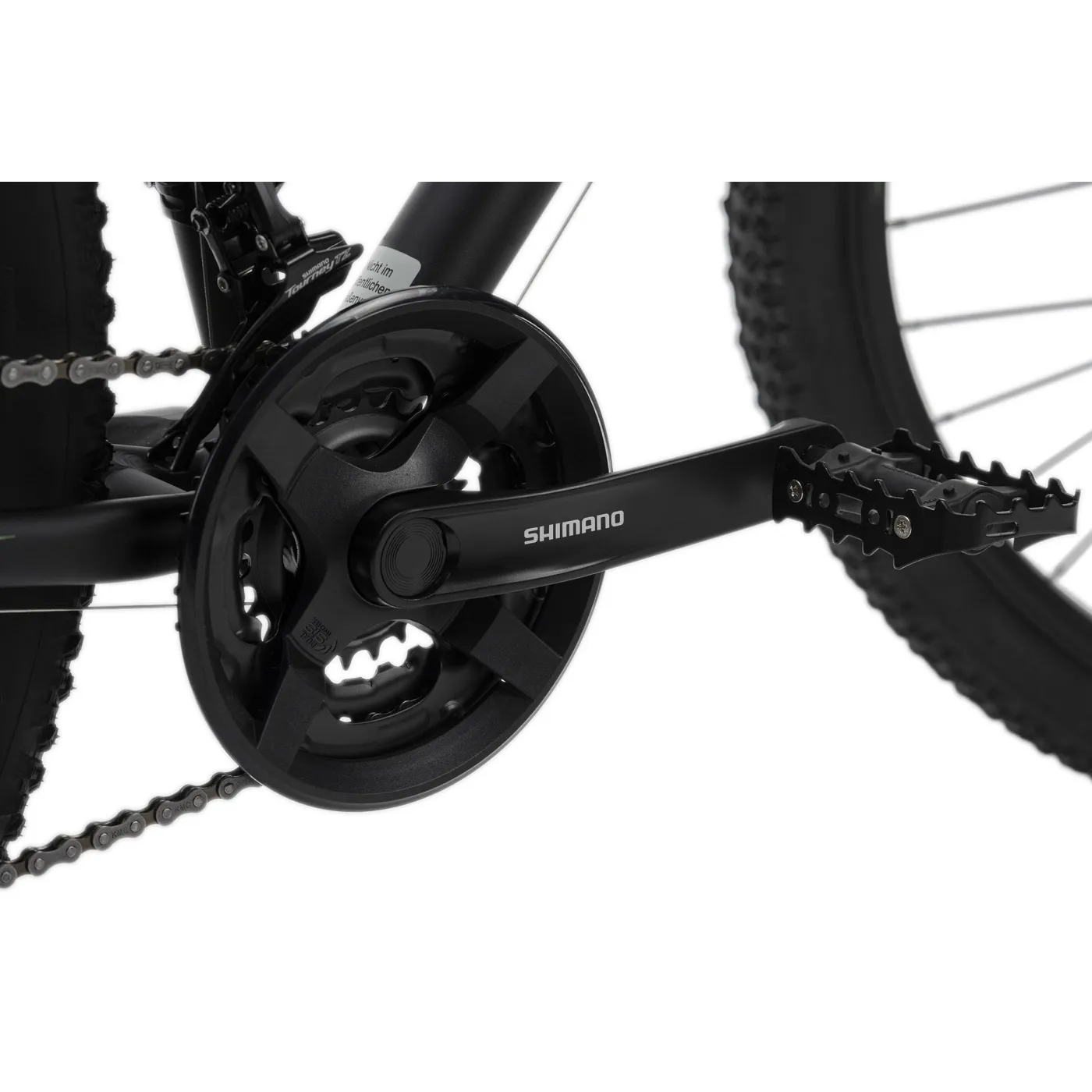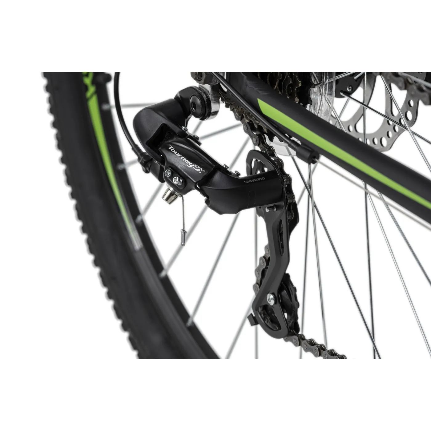 Rower jest wyposażony w 21- szybka przerzutka z komponentami SHIMANO. Niezbędne hamowanie zapewniają mechaniczne hamulce tarczowe z przodu i z tyłu. Ergonomiczne siodełko idealnie wpasowuje się w ogólny obraz.