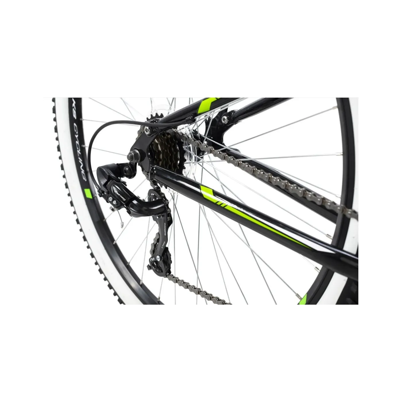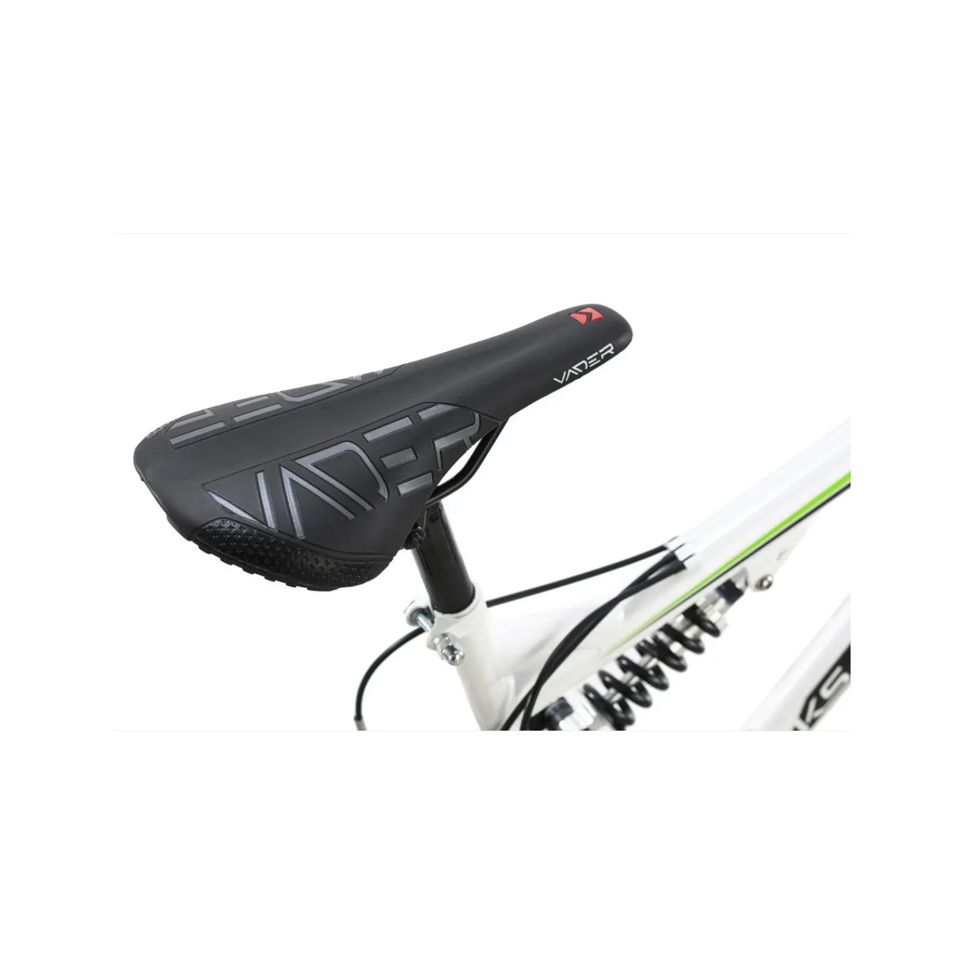 Jego duże koła lepiej toczą się po przeszkodach, mają lepszą przyczepność dzięki większej powierzchni styku i mogą dużo szybciej rozwinąć prędkość. Wyposażony w 21-biegową zmianę biegów obsługiwaną za pomocą obrotowej dźwigni zmiany biegów oraz hamulce typu V-brake, które pozwolą na bezpieczne i skuteczne zatrzymywanie się oraz zwalnianie. Rama z pełnym zawieszeniem to komfort jazdy na każdej trasie!
