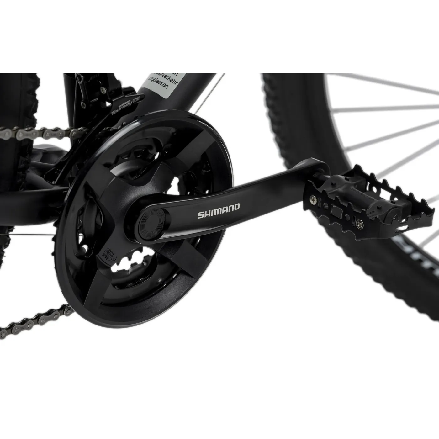 Rower jest wyposażony w 21-biegową przerzutkę z komponentami SHIMANO. Niezbędne hamowanie zapewniają mechaniczne hamulce tarczowe z przodu i z tyłu. Ergonomiczne siodełko idealnie wpasowuje się w ogólny obraz.